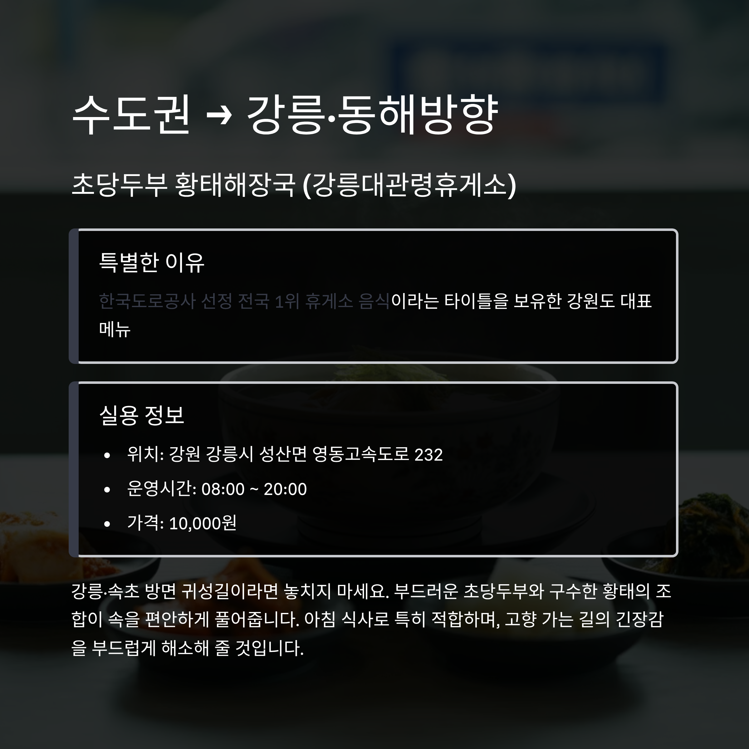 수도권 → 강릉·동해방향: 초당두부 황태해장국 (강릉대관령휴게소)