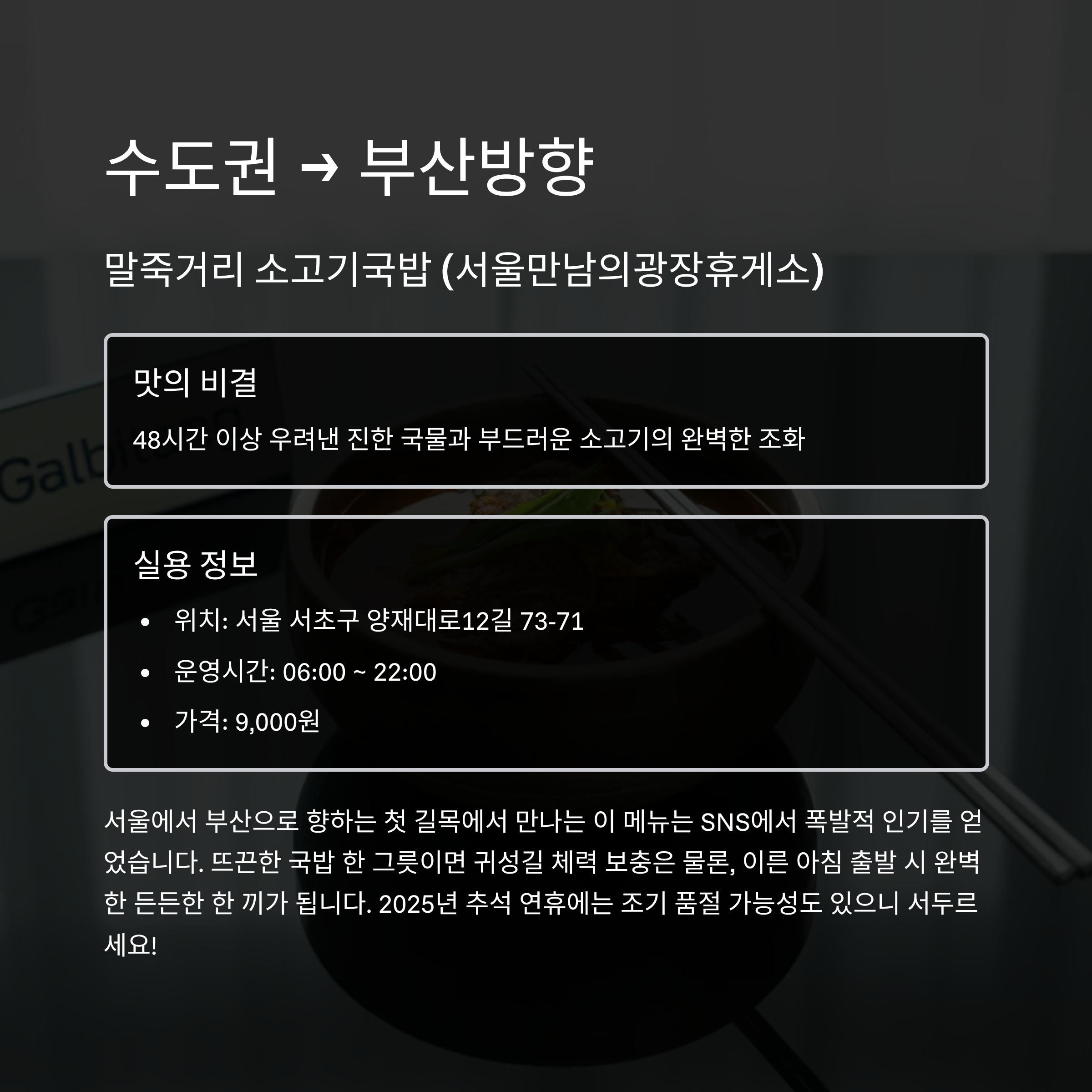 수도권 → 부산방향: 말죽거리 소고기국밥 (서울만남의광장휴게소)