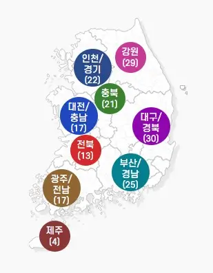 지역별 자연휴양림을 확인하시려면 아래 그림을 클릭해 주세요