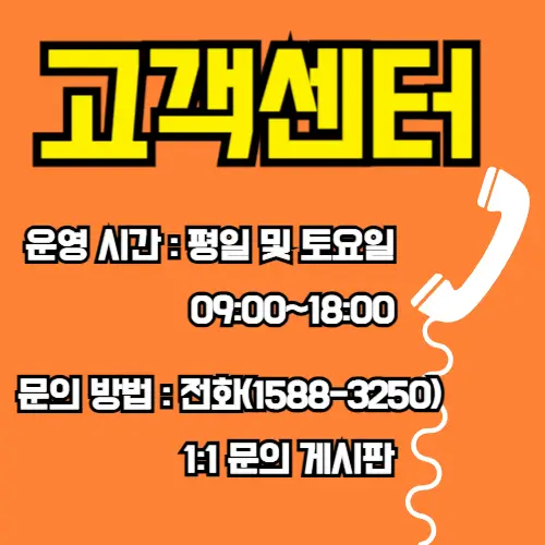 - 문의 방법: 전화(1588-3250), 1:1 문의 게시판