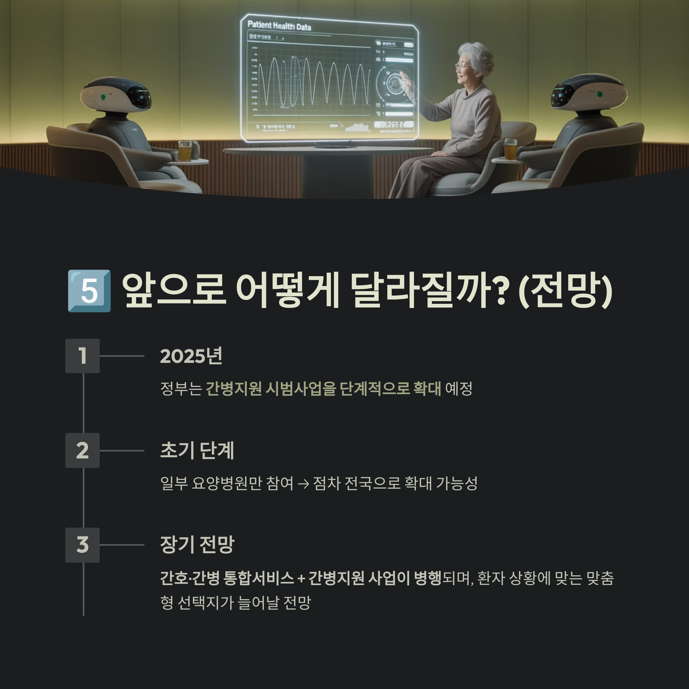 - 정부는 2025년부터 간병지원 시범사업을 단계적으로 확대 예정.