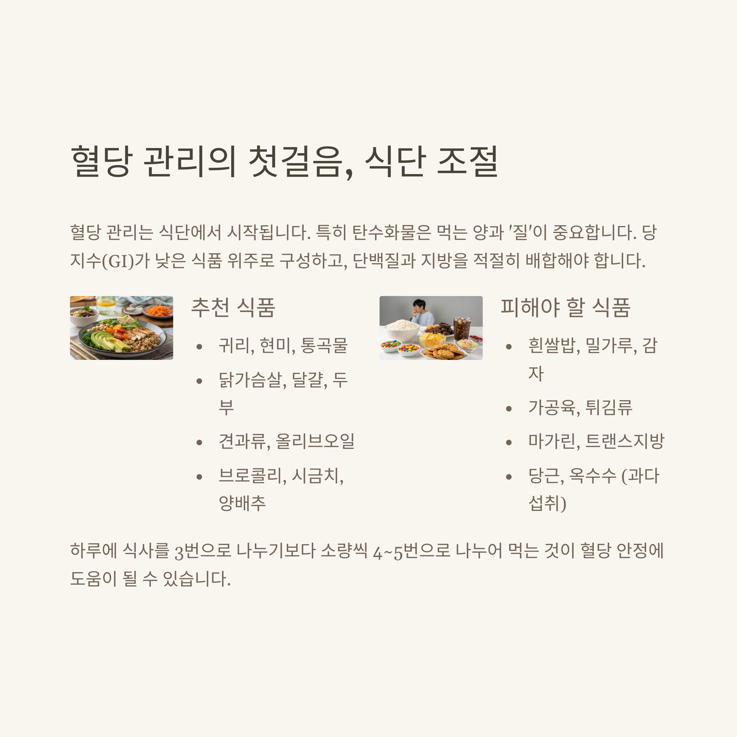 혈당 관리는 식단에서 시작됩니다. 특히 탄수화물은