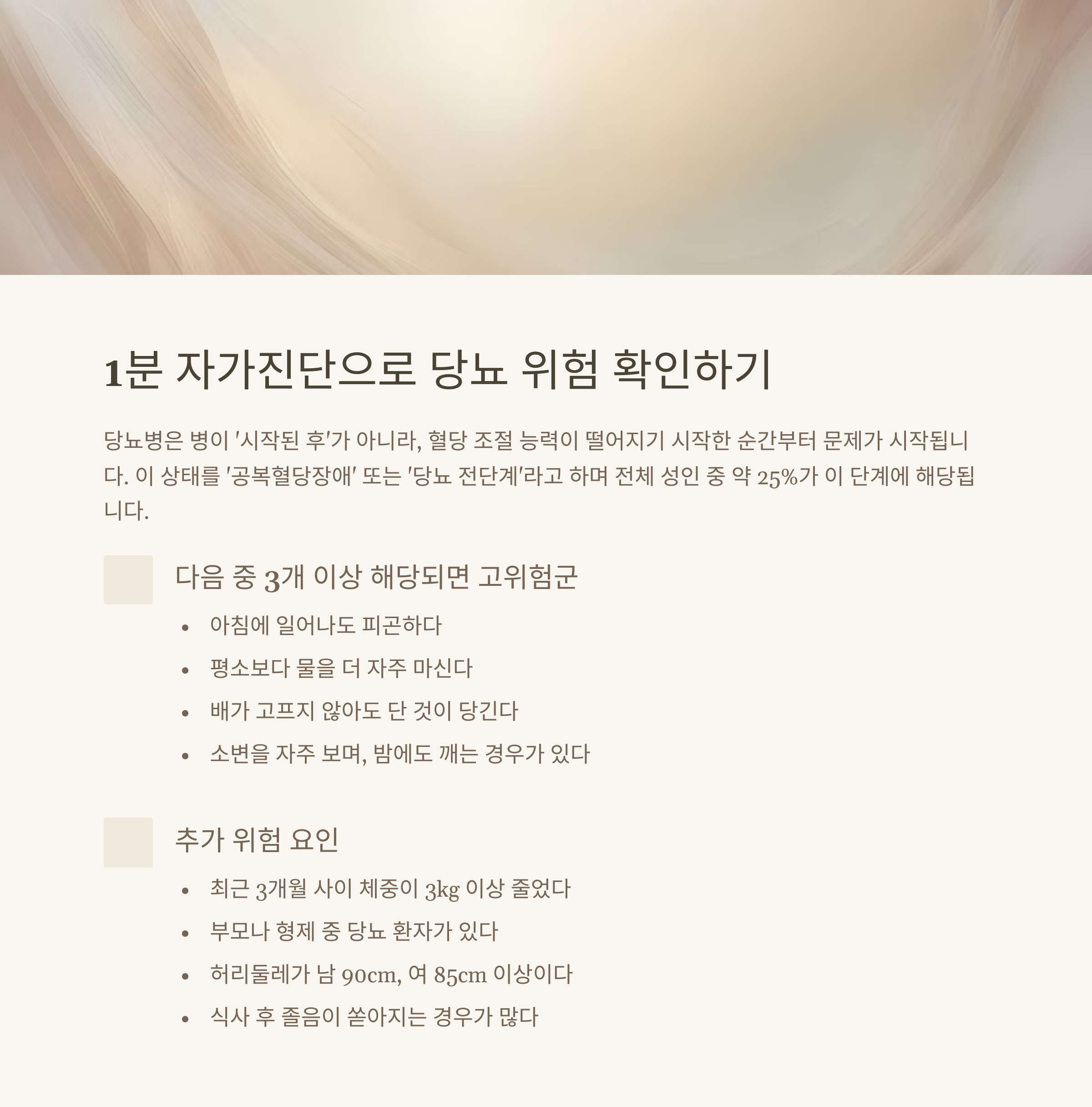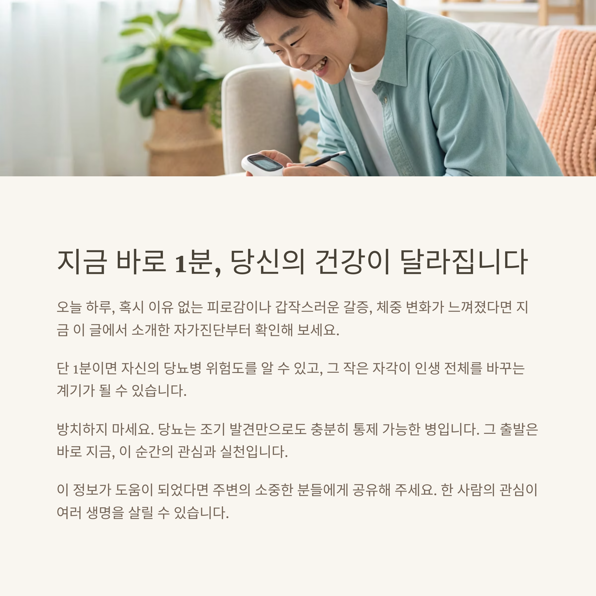 “무심코 넘긴 증상들이 ‘당뇨 초기 사인’? 1분 자가진단으로 지금 확인하세요