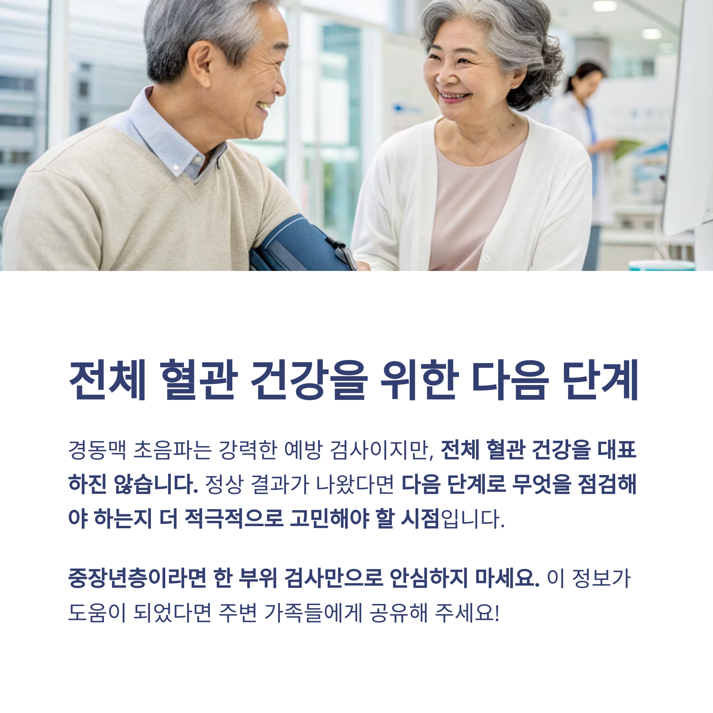 경동맥 초음파는 강력한 예방 검사이지만, 전체 혈관 건강을 대표하진 않습니다.