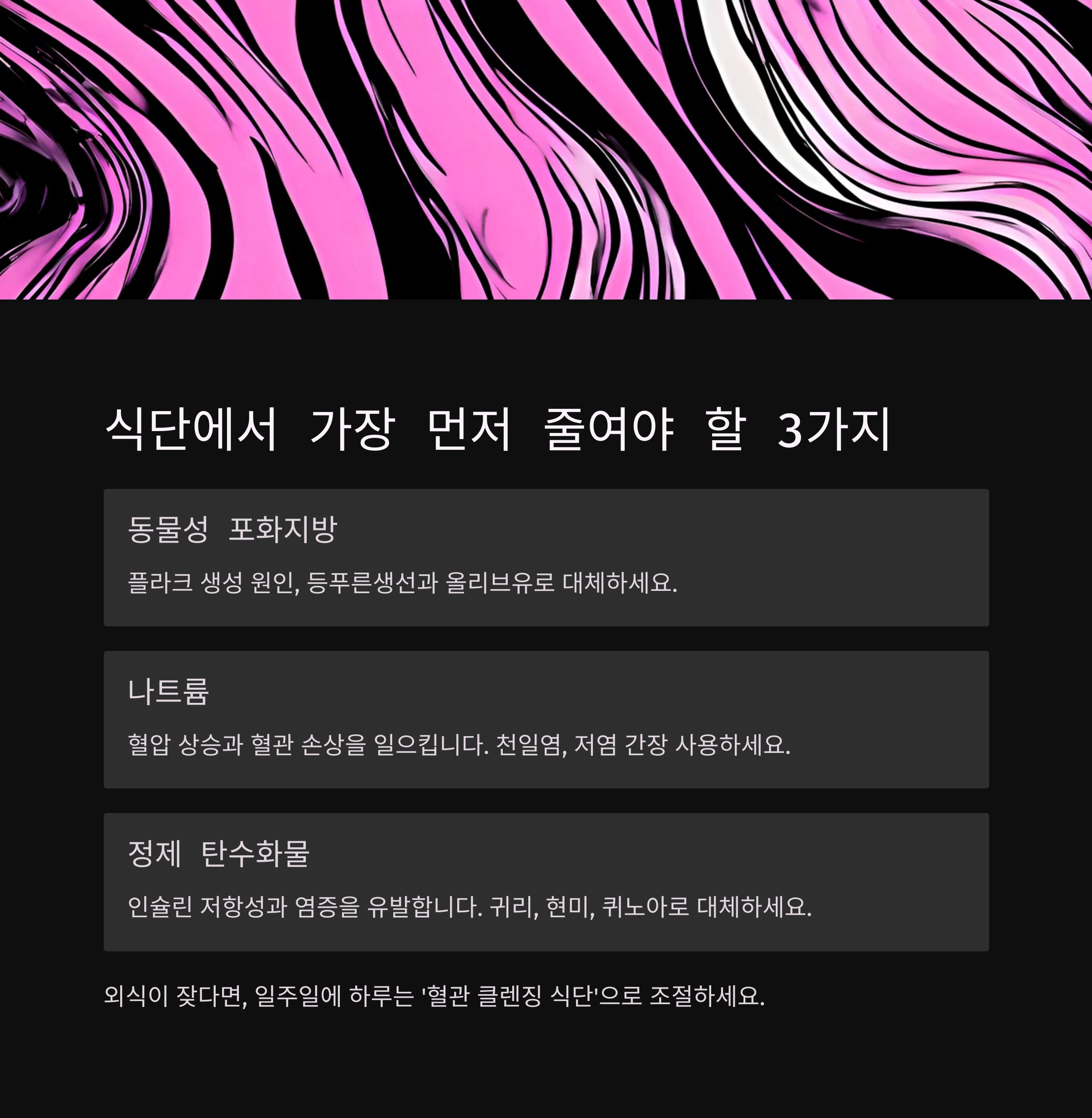 하루 10분의 변화, 꾸준한 식단과 수면 습관만으로도 혈관은 회복의 길로 향할 수 있습니다.