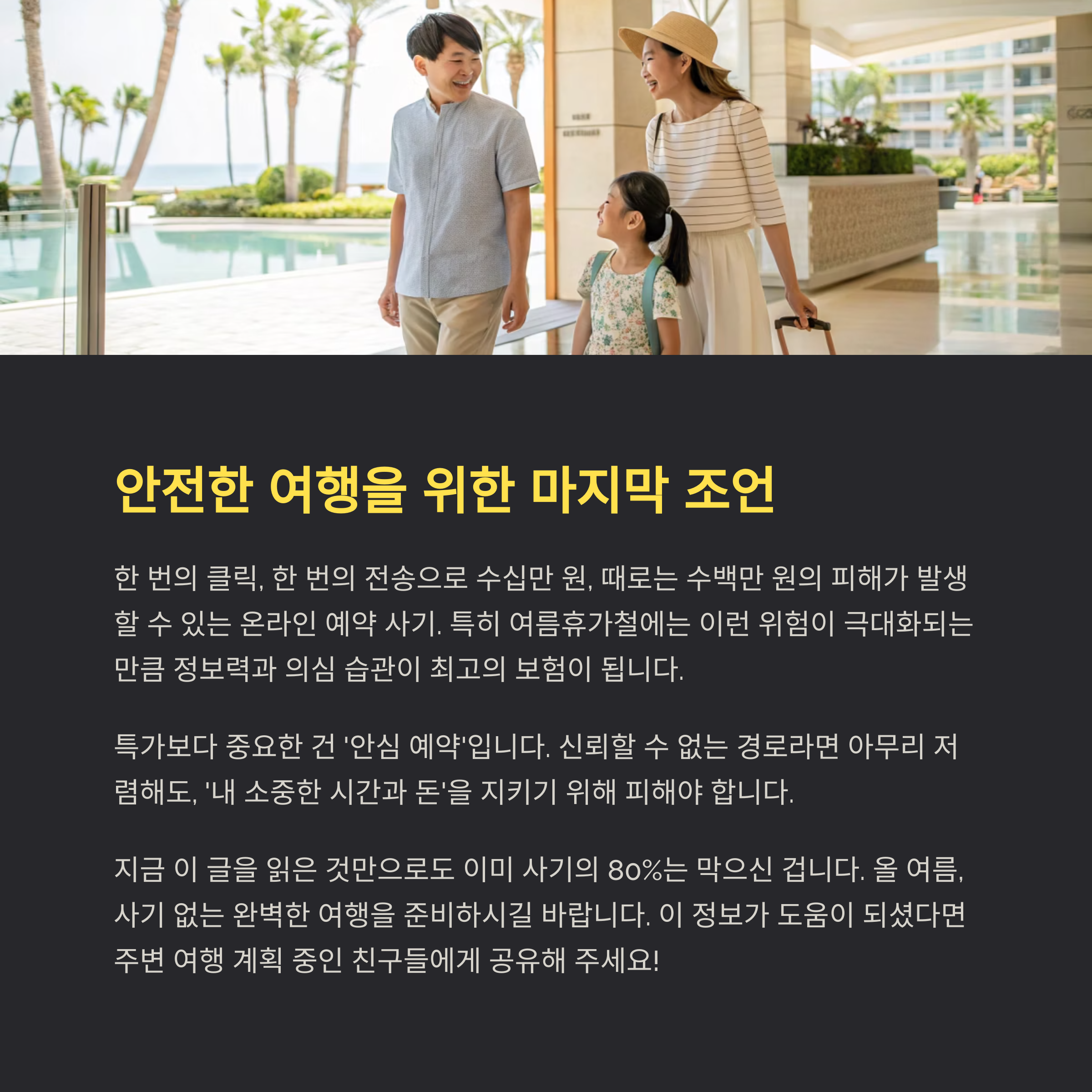 올 여름, 사기 없는 완벽한 여행을 준비하시길 바랍니다.