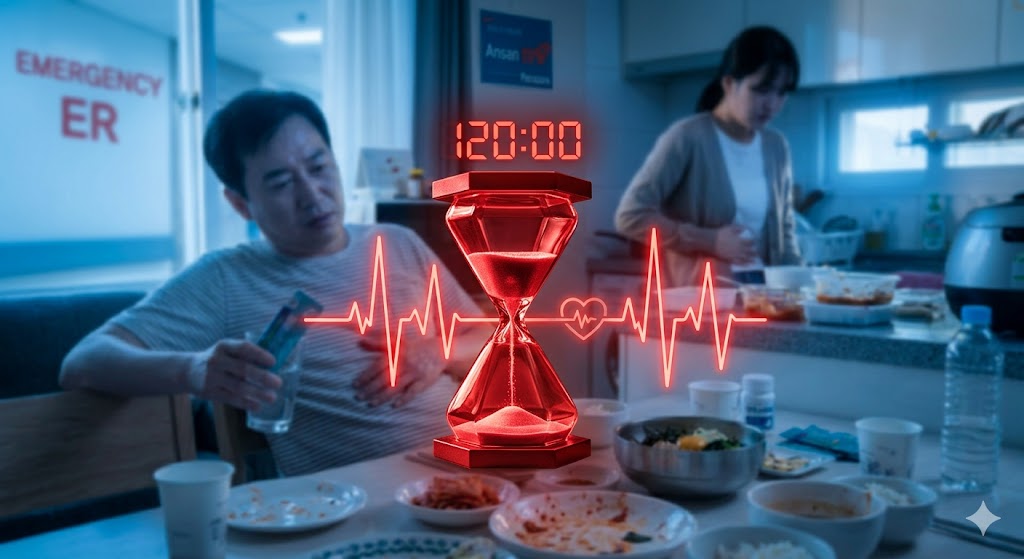 이건 단순한 소화불량이 아니에요. 혈관이 완전히 막혀 심장 근육이 죽어가는 '심근경색'의 전형적인 증상이거든요. 겪어보면 이런 상황에서 "좀 누워 있으면 낫겠지" 하다가 골든타임을 놓치는 경우가 정말 많아 안타깝습니다.