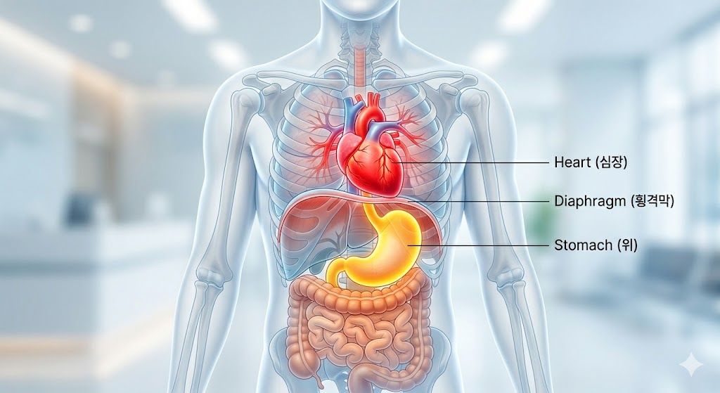 [면책사항] 본 포스팅은 정보 전달을 목적으로 작성되었으며, 의학적 진단이나 치료를 대신할 수 없습니다. 가슴 통증이나 소화불량 증상이 심할 경우 즉시 119에 연락하거나 전문 의료기관을 방문하시기 바랍니다.