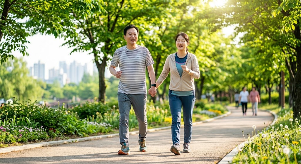 - 유산소 운동: 하루 30분, 주 5회 정도 가볍게 땀이 날 정도의 걷기나 수영을 추천해요.