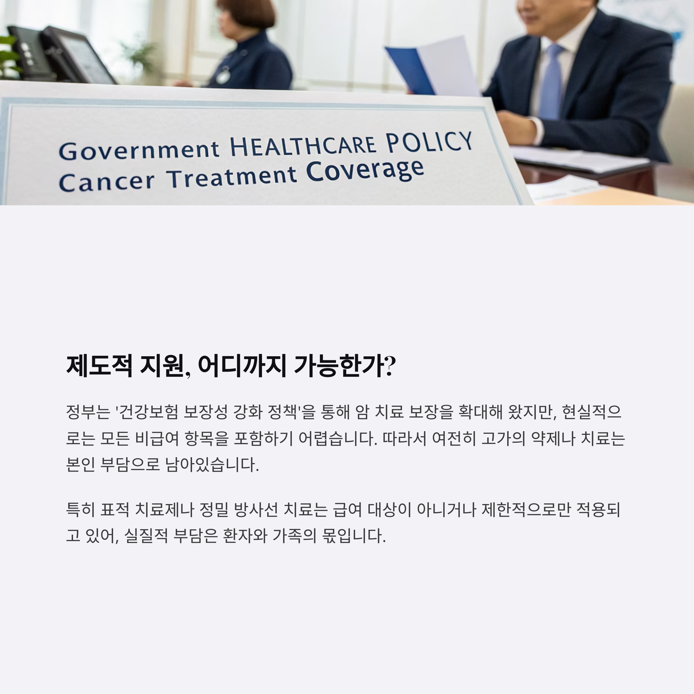 정부는 '건강보험 보장성 강화 정책'을 통해 암 치료 보장을 확대해 왔지만,