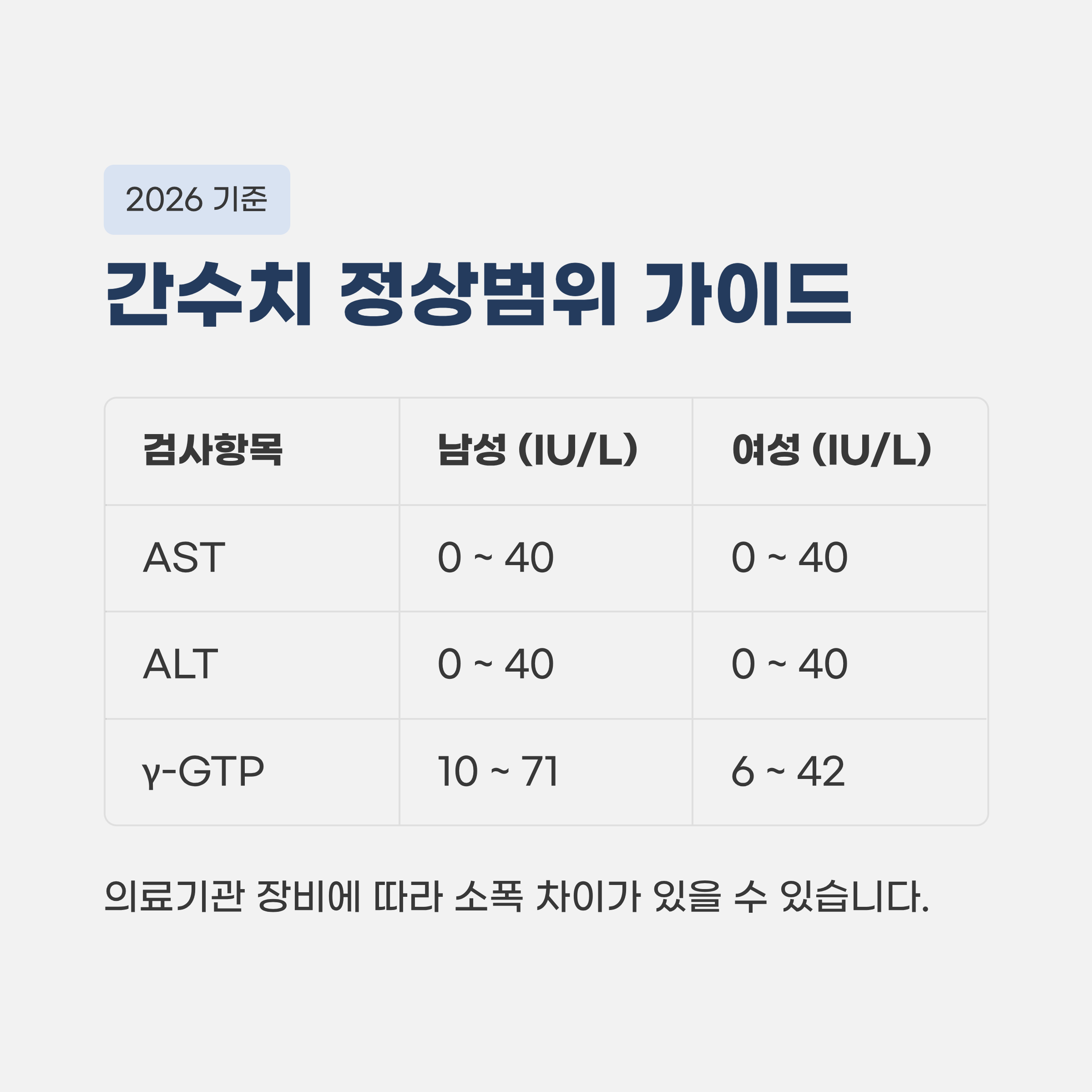 3. 2026 간수치 정상범위 가이드 (성인 기준)