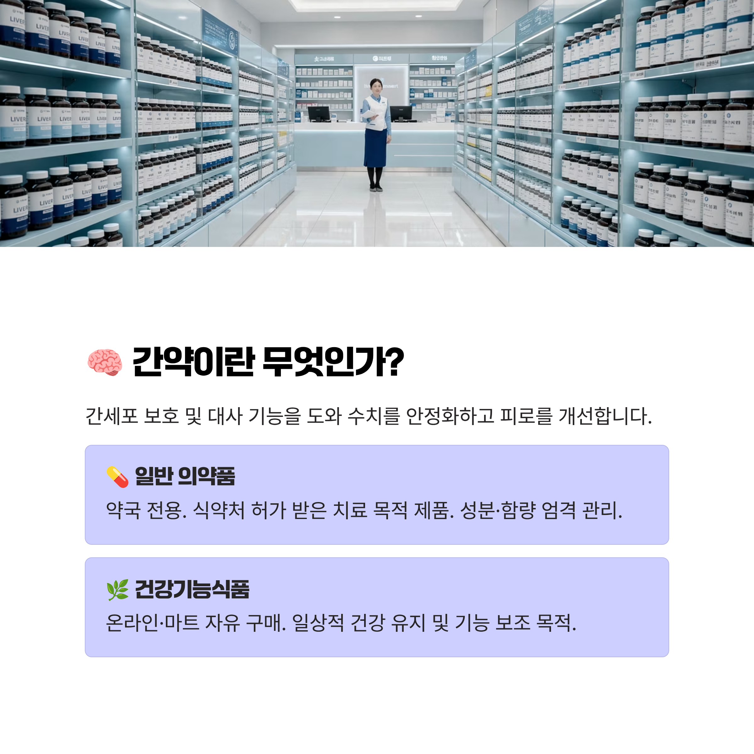 | 권장 대상 | 간수치 이상, 뚜렷한 피로 증상 | 평소 관리, 음주 잦은 일반인 |