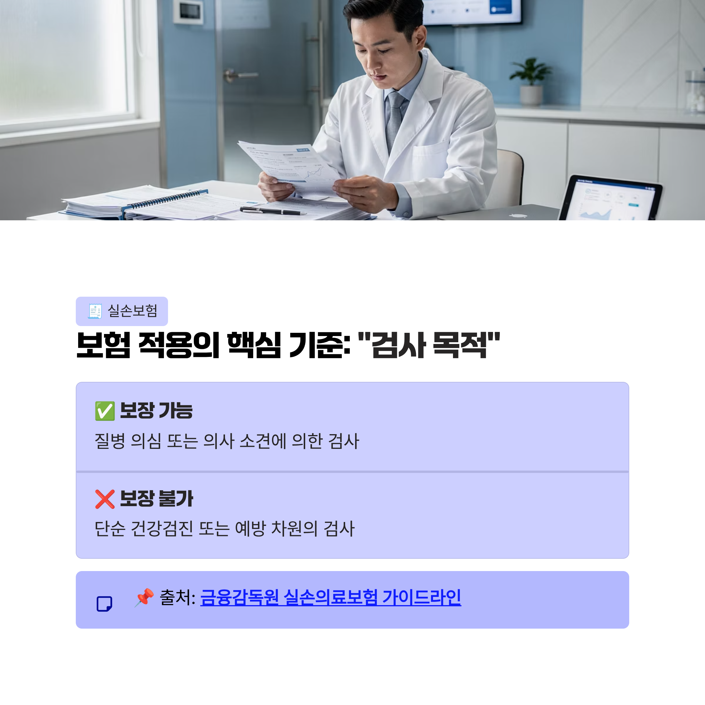 🧾 2. 실손보험 적용의 핵심 기준: "검사 목적"
