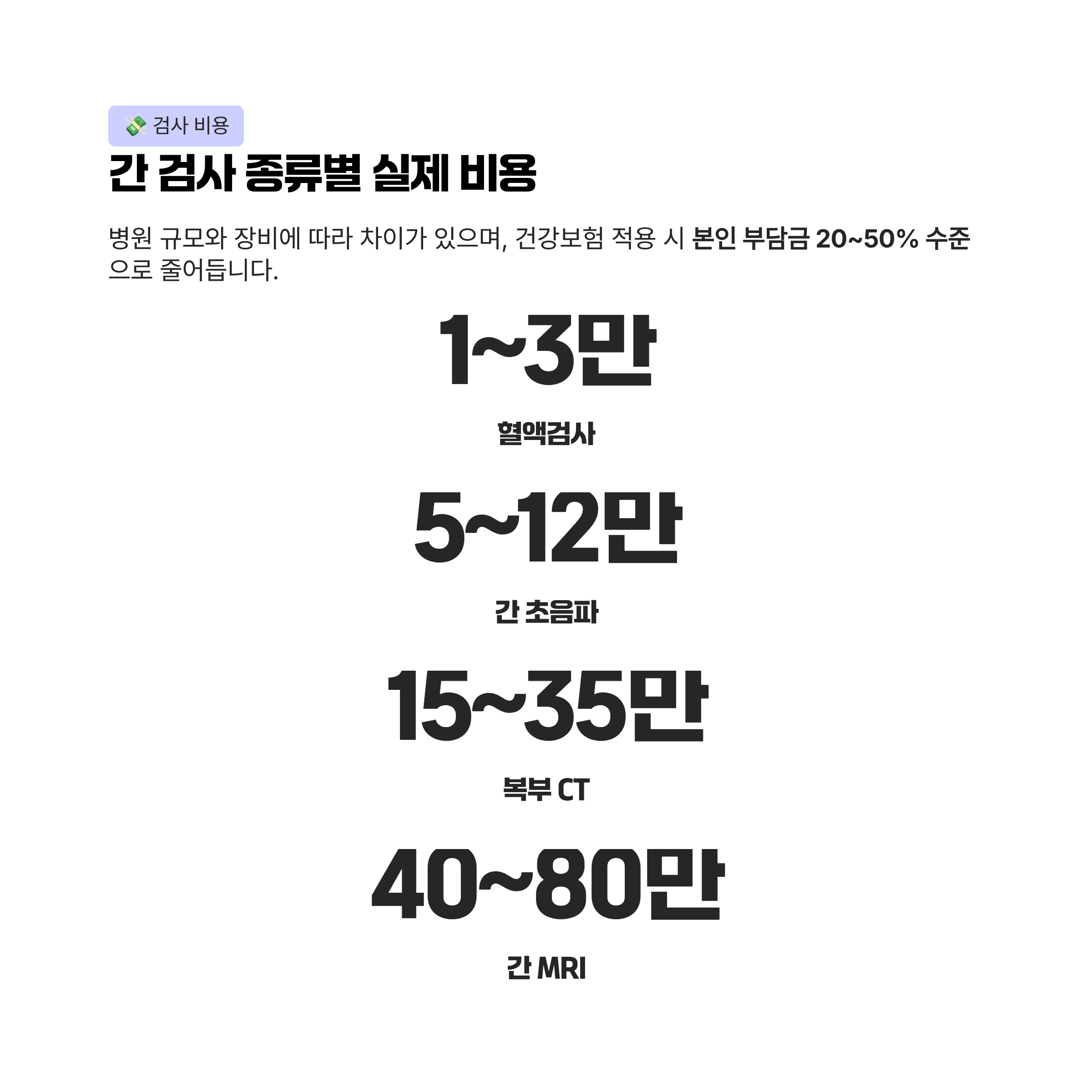 💸 1. 간 검사 종류별 실제 비용 (2026년 기준)