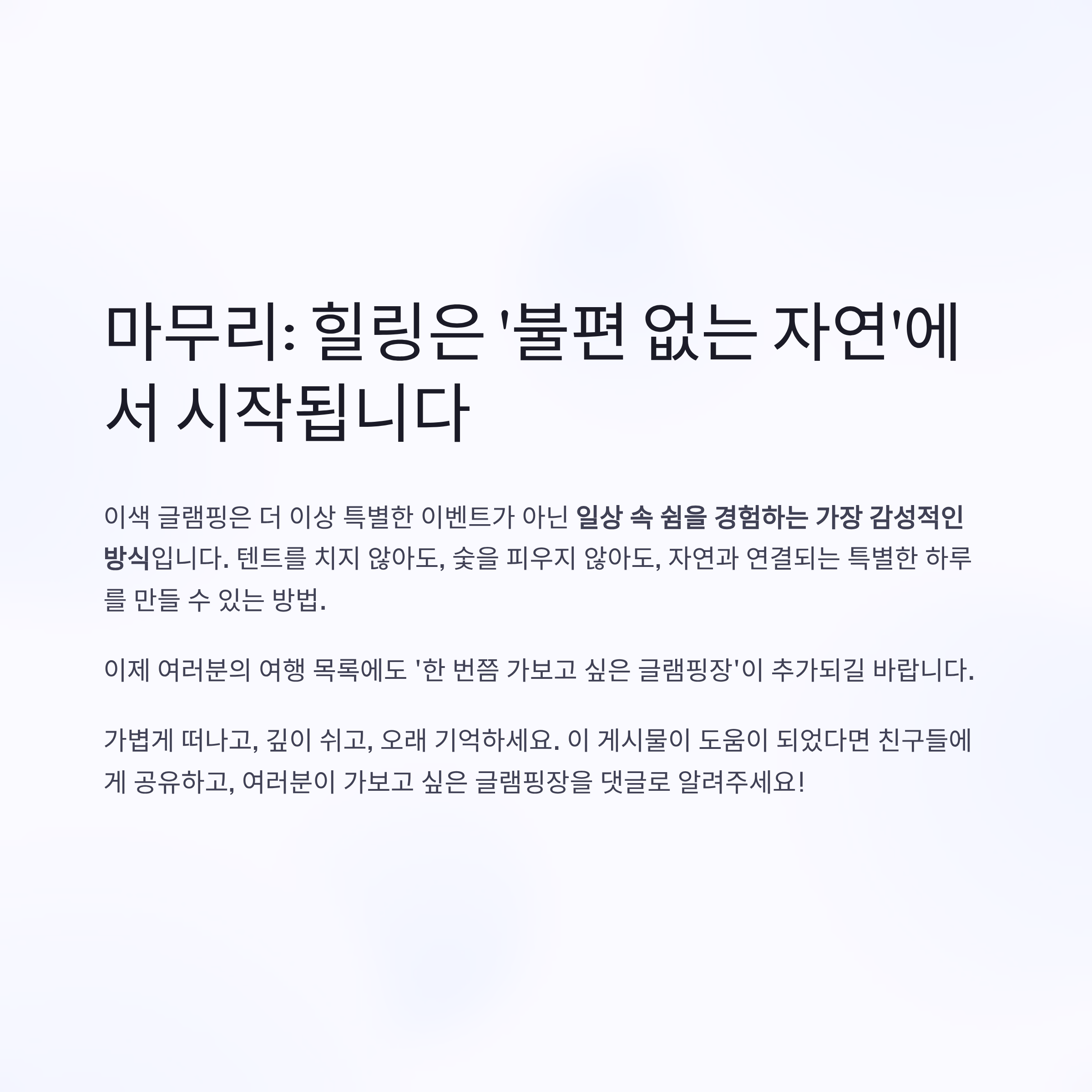 마무리: 힐링은 ‘불편 없는 자연’에서 시작됩니다