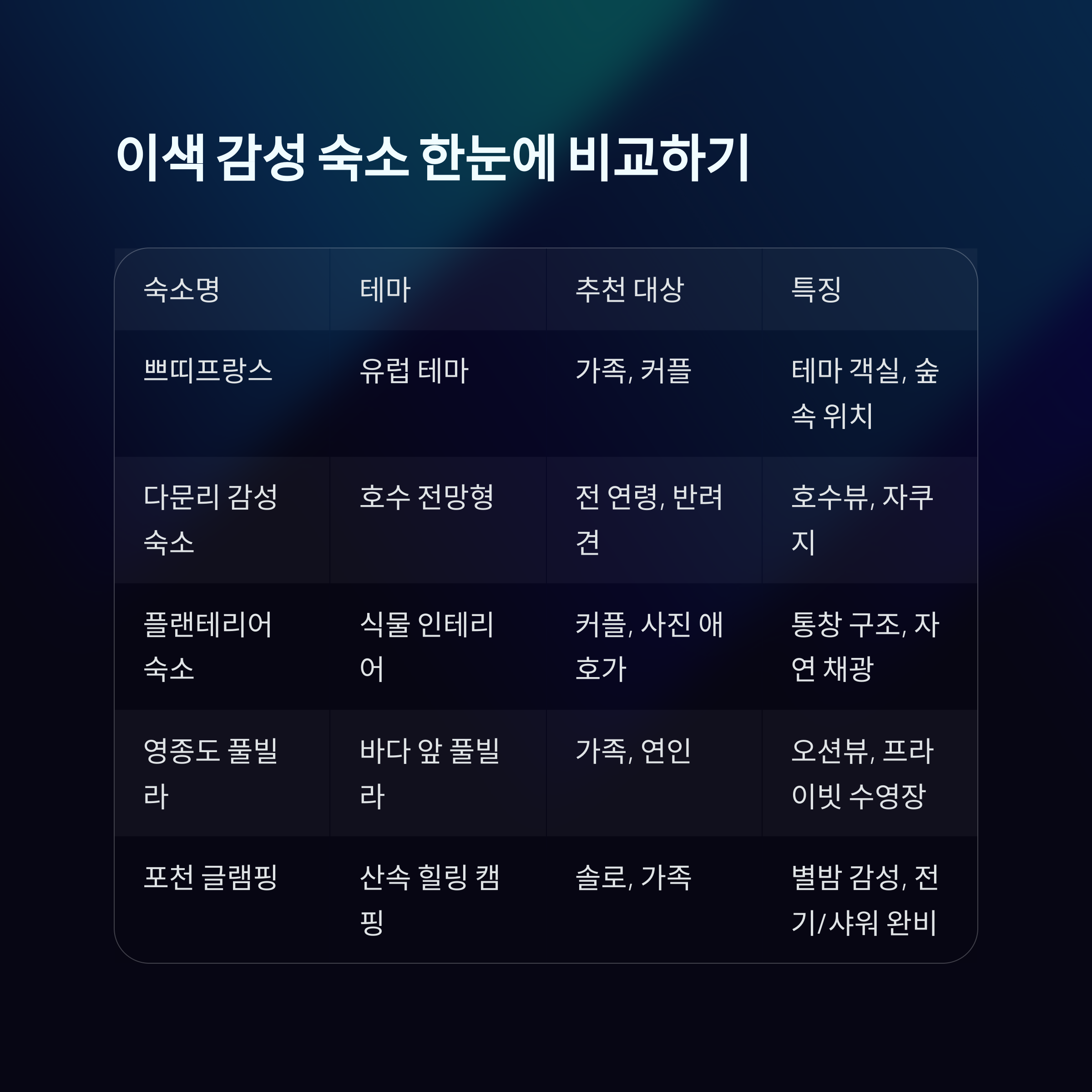 감성만 챙긴 불편한 여행이 아닌, 편리함과 자연을 모두 갖춘 여행지입니다.