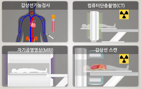 - 갑상선 전문 전산화 단층촬영(CT): 갑상선암의 확산 정도를 평가하고 종양의 크기와 위치를 더 자세히 확인하는 데 사용됩니다.