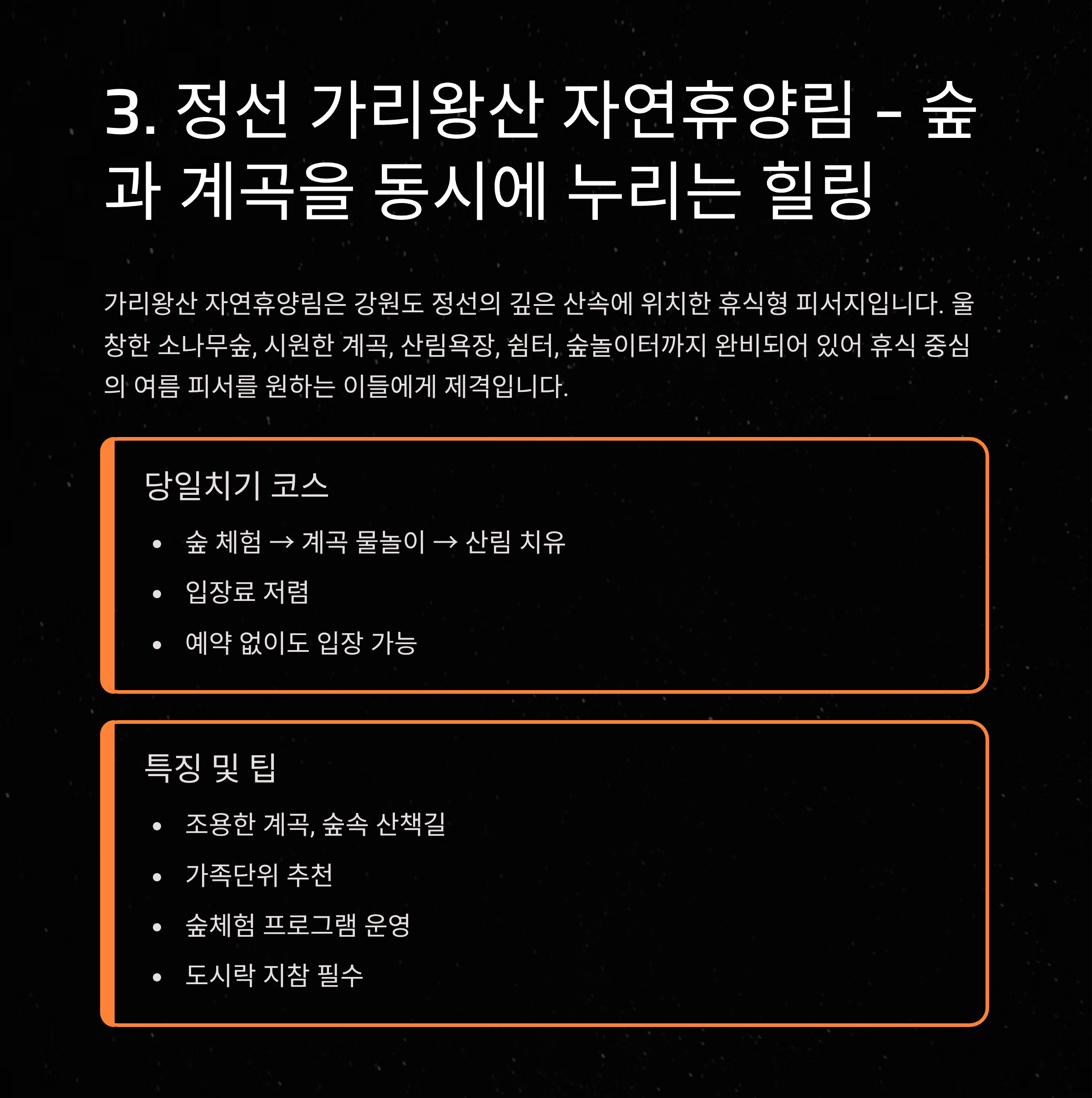 3. 정선 가리왕산 자연휴양림 – 숲과 계곡을 동시에 누리는 힐링