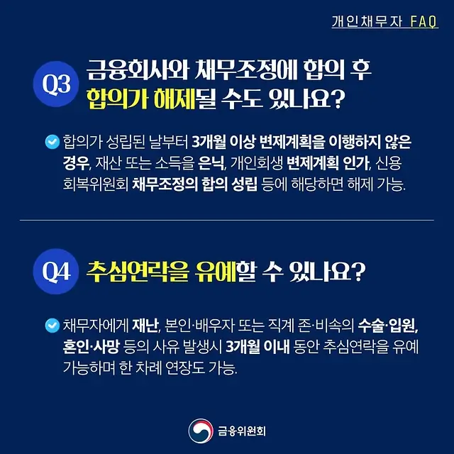원금 3천만 원 이외의 신용을 제외하고 채무자는 금융 회사에 채무를 조정하거나 통화할 수 있습니다. - Q2. 채무가 거절될 수도 있나요?
