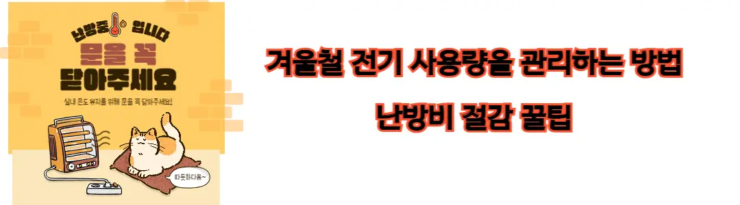 - 보온용품 활용: 전기 사용을 줄이기 위해 전기 담요나 전기 패드를 사용하고, 창문 틈새나 문틈을 막아 보온효과를 극대화하세요.