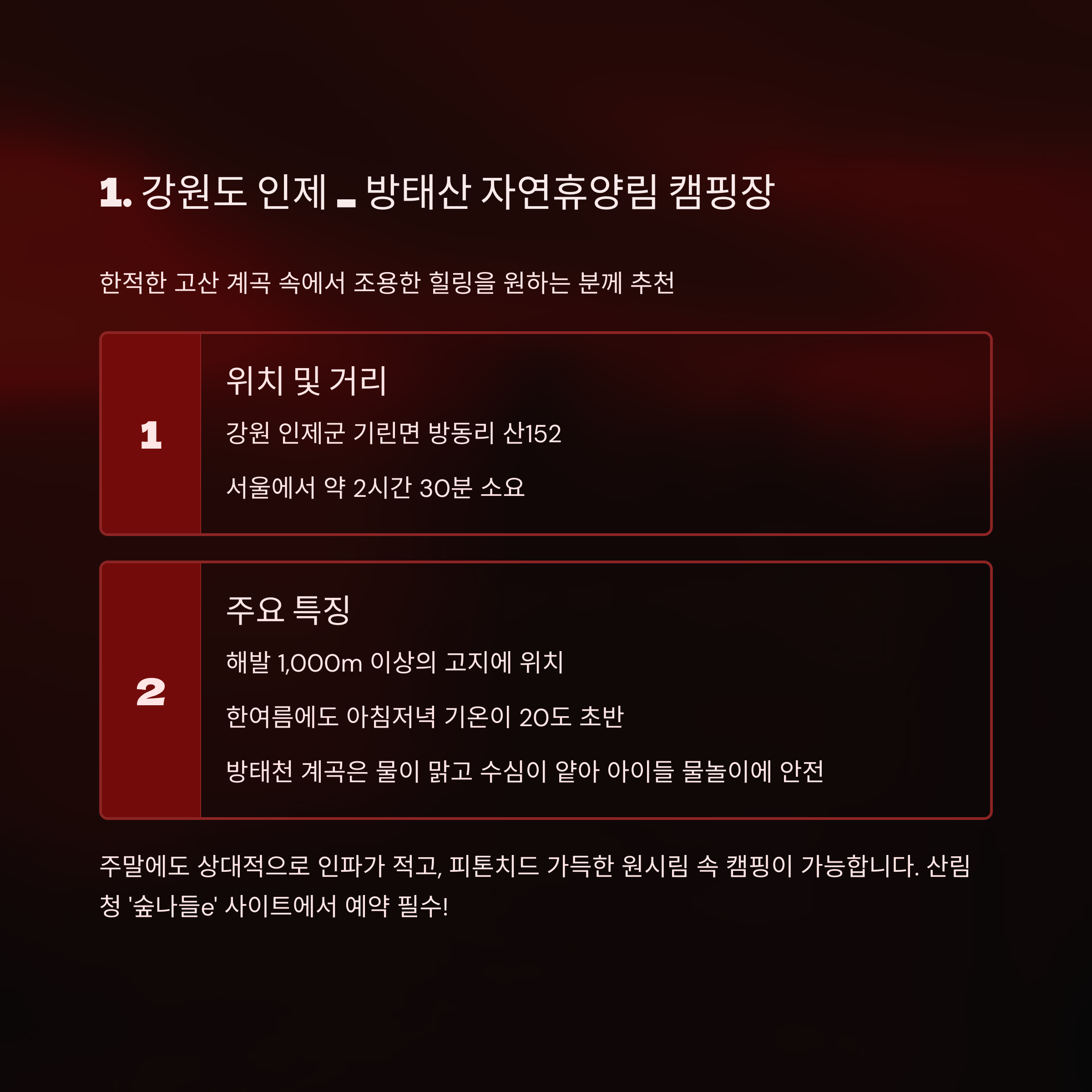 1. 강원도 인제 _ 방태산 자연휴양림 캠핑장