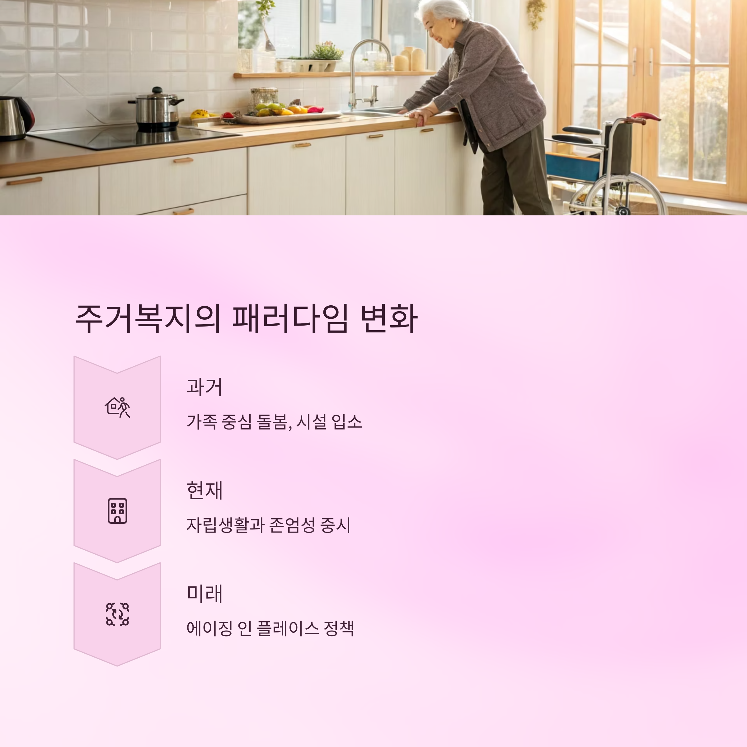 최근에는 노인의 자립생활과 존엄성을 지키는 주거복지가 강조되고 있습니다