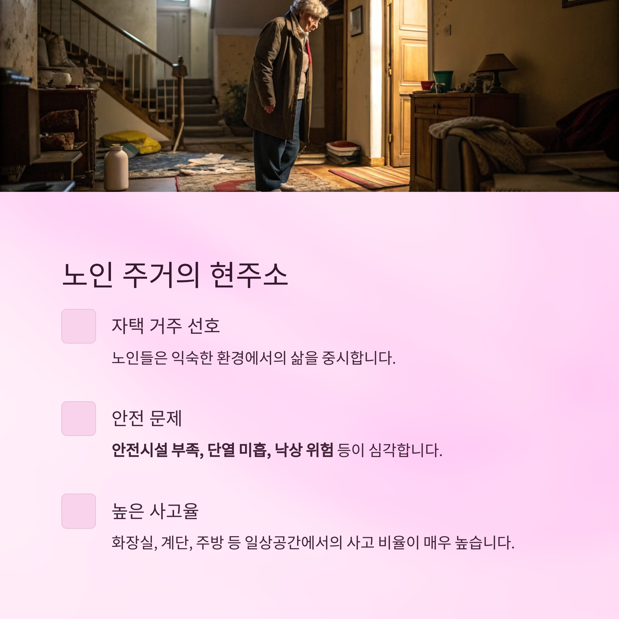 초고령사회에 진입한 지금, 노인을 위한 주거환경 개선은 더 이상 선택이 아닌 필수입니다