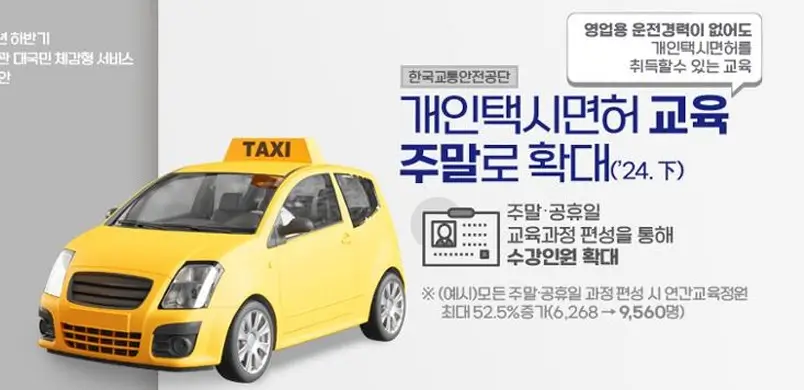주중에만 운영되던 개인택시면허 교육이 이제는 주말과 공휴일에도 운영됩니다. 이로 인해 바쁜 직장인들도 쉽게 교육을 받을 수 있게 되었습니다.