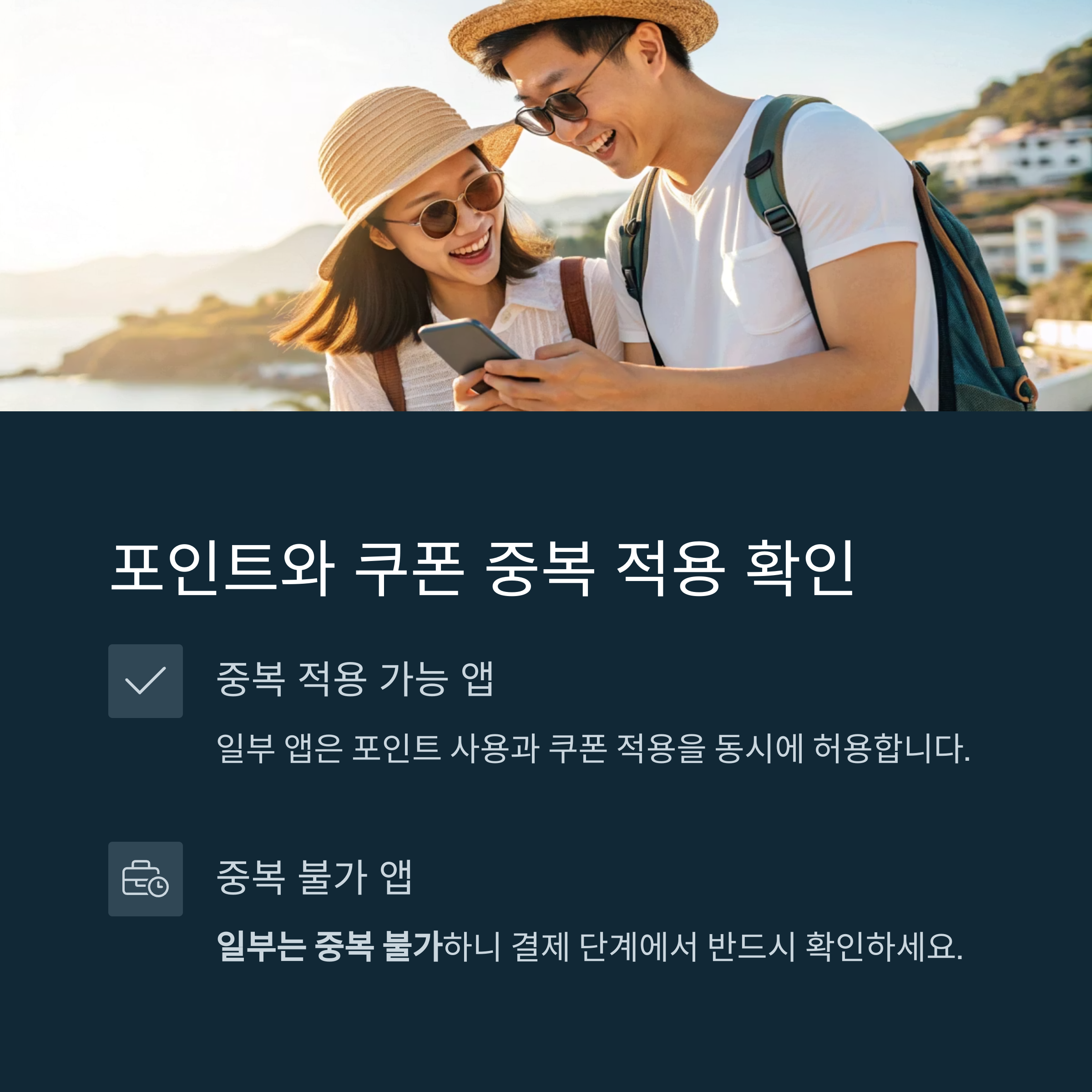 일부 앱은 포인트 사용과 쿠폰 적용을 동시에 허용하지만, 일부는 중복 불가입니다