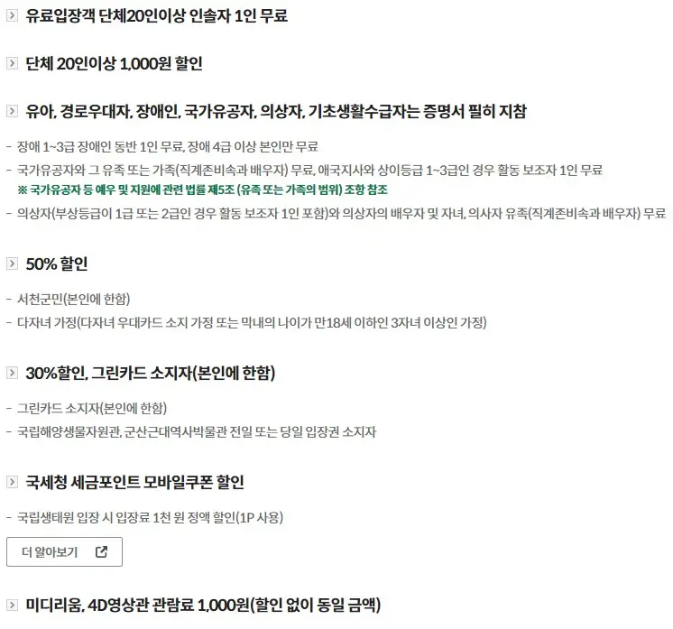 - 할인정보: 아래 이미지를 클릭하시면 국립생태원 세금포인트 할인 페이지로 바로 이동됩니다.