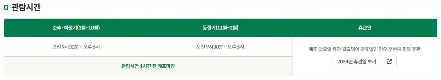 - 입장 요금: 성인, 어린이, 학생에 따라 다르게 책정됩니다.