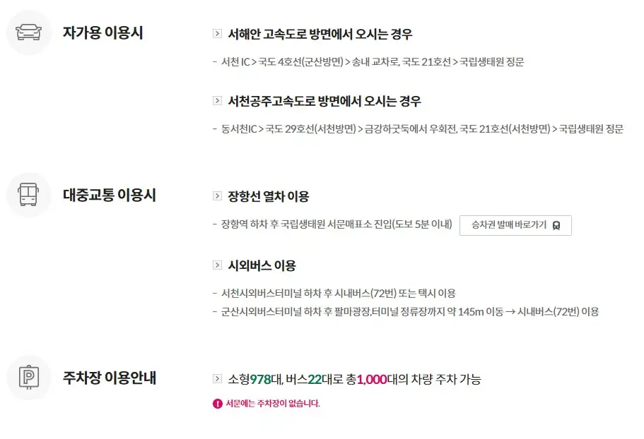 국립생태원까지의 교통편과 주차 공간에 대한 정보를 미리 확인해 두는 것이 좋습니다.