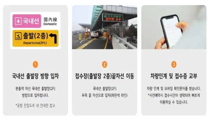 2. 차량 인도: 예약된 시간에 김포공항 도착 후 지정된 장소에서 주차 요원에게 차량을 맡깁니다.