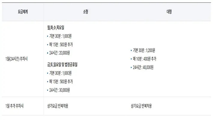 - 추가 요금: 장기 주차 또는 특별 서비스 이용 시 추가로 부과되는 요금입니다.