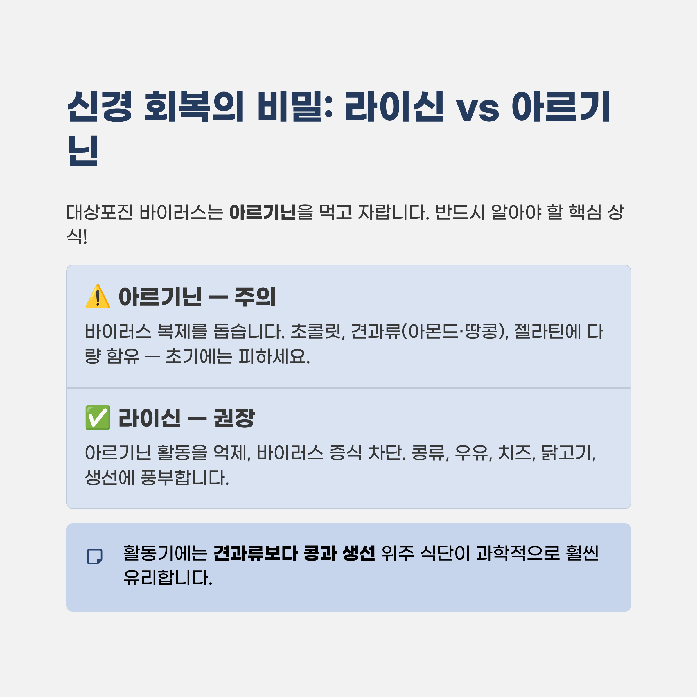 - 신경 회복의 핵심: 라이신 vs 아르기닌 비율의 비밀