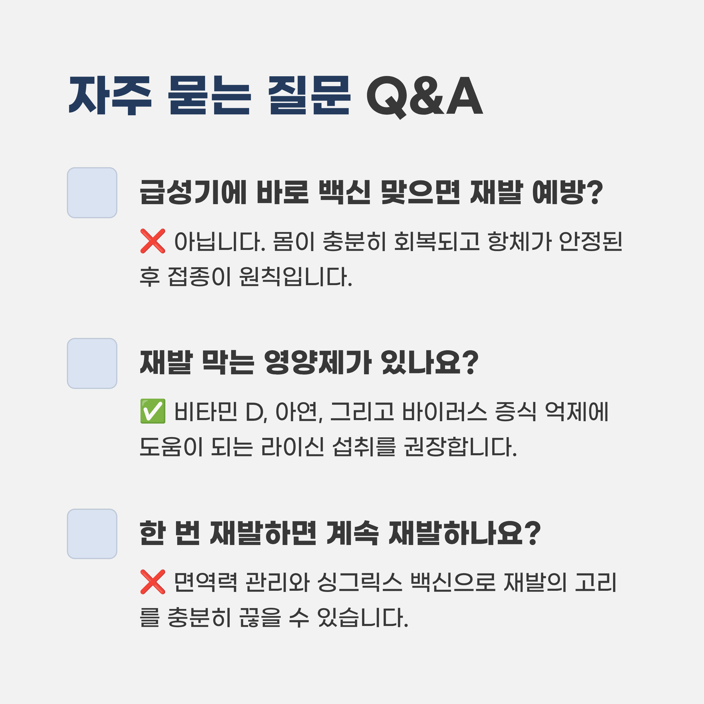 - 대상포진 재발 관련 궁금증 (Q&A)