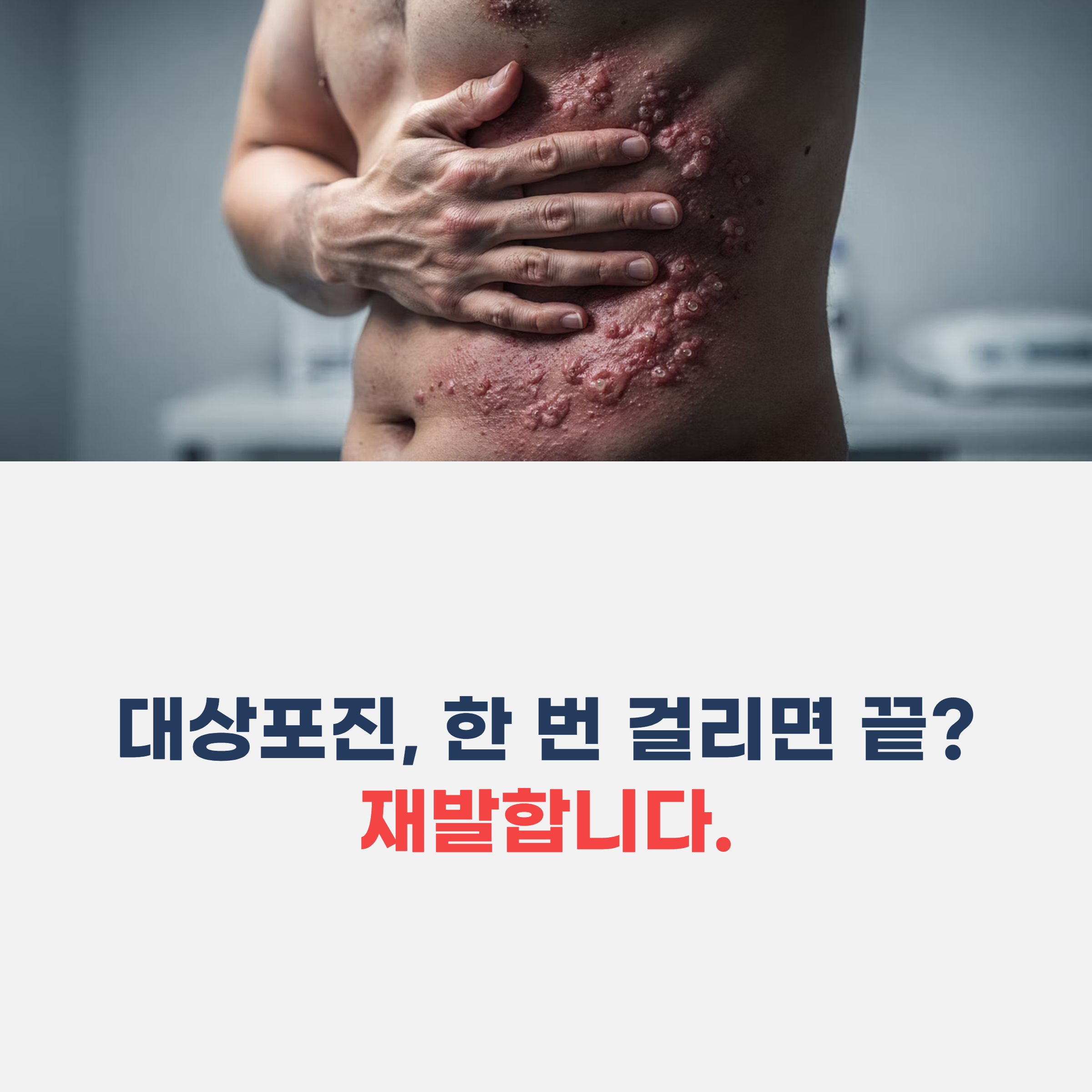 - 통증이 심했던 환자: 첫 발병 시 통증이 극심했거나 수포 범위가 넓었던 분들은 체내 바이러스 부하량이 많았음을 의미하므로 재발 위험이 상대적으로 높습니다.