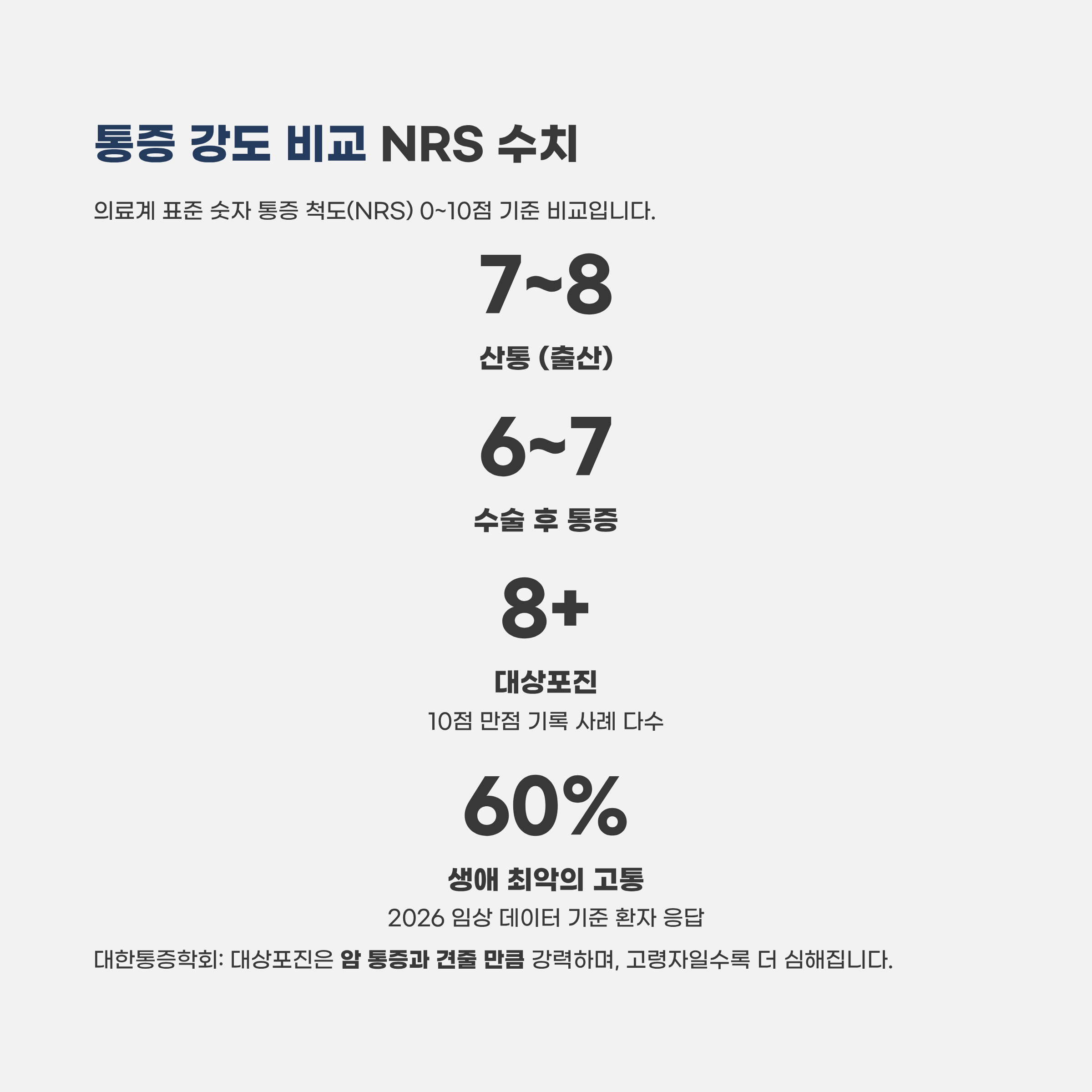 - 대상포진 통증 강도 비교 (출산 vs 수술 후 통증)