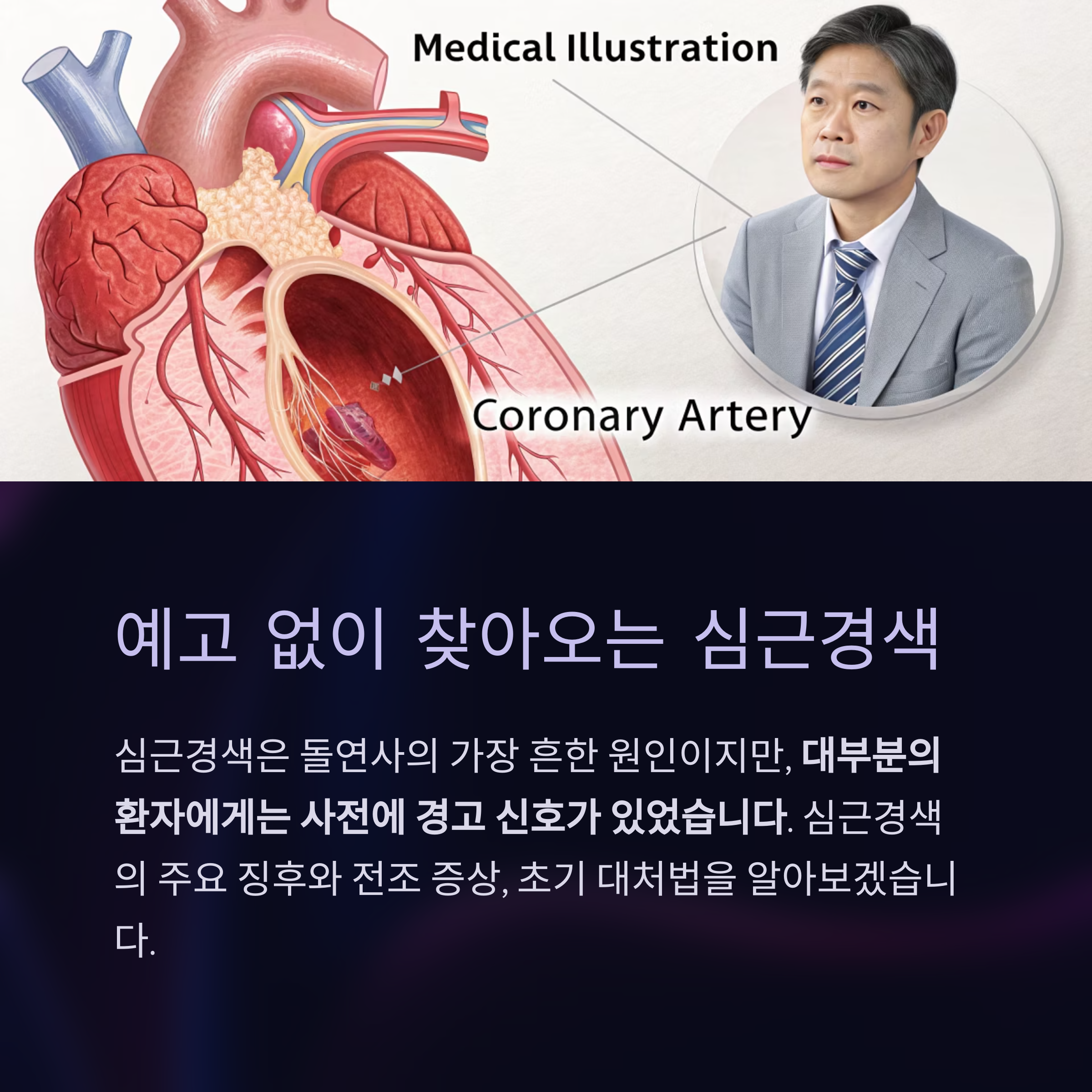 심근경색은 돌연사의 가장 흔한 원인이며, 예고 없이 찾아올 수 있습니다.