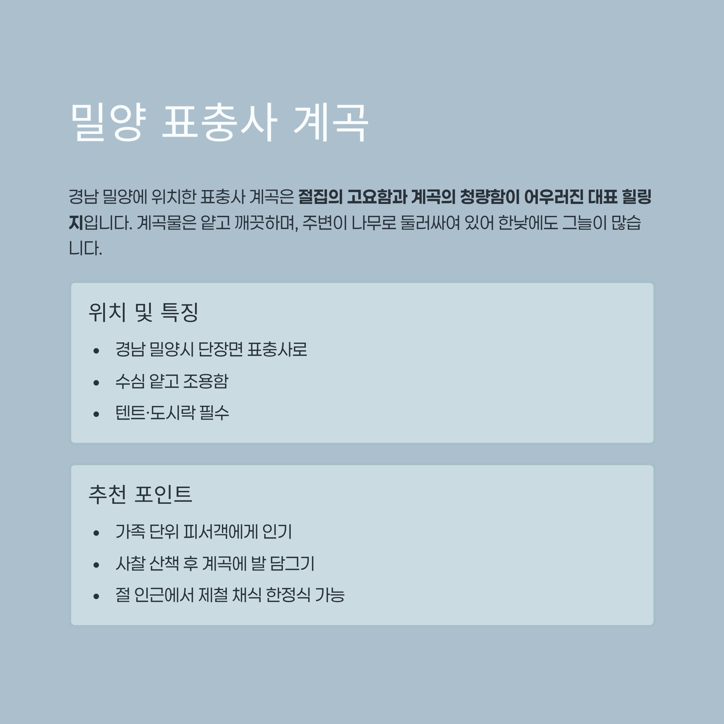 1. 밀양 표충사 계곡 – 사찰과 계곡이 함께하는 조용한 쉼