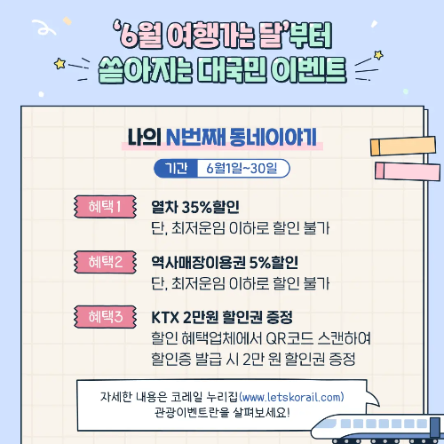 - KTX 2만 원 할인권 증정 (특정 업체에서 QR코드 스캔 시 발급)