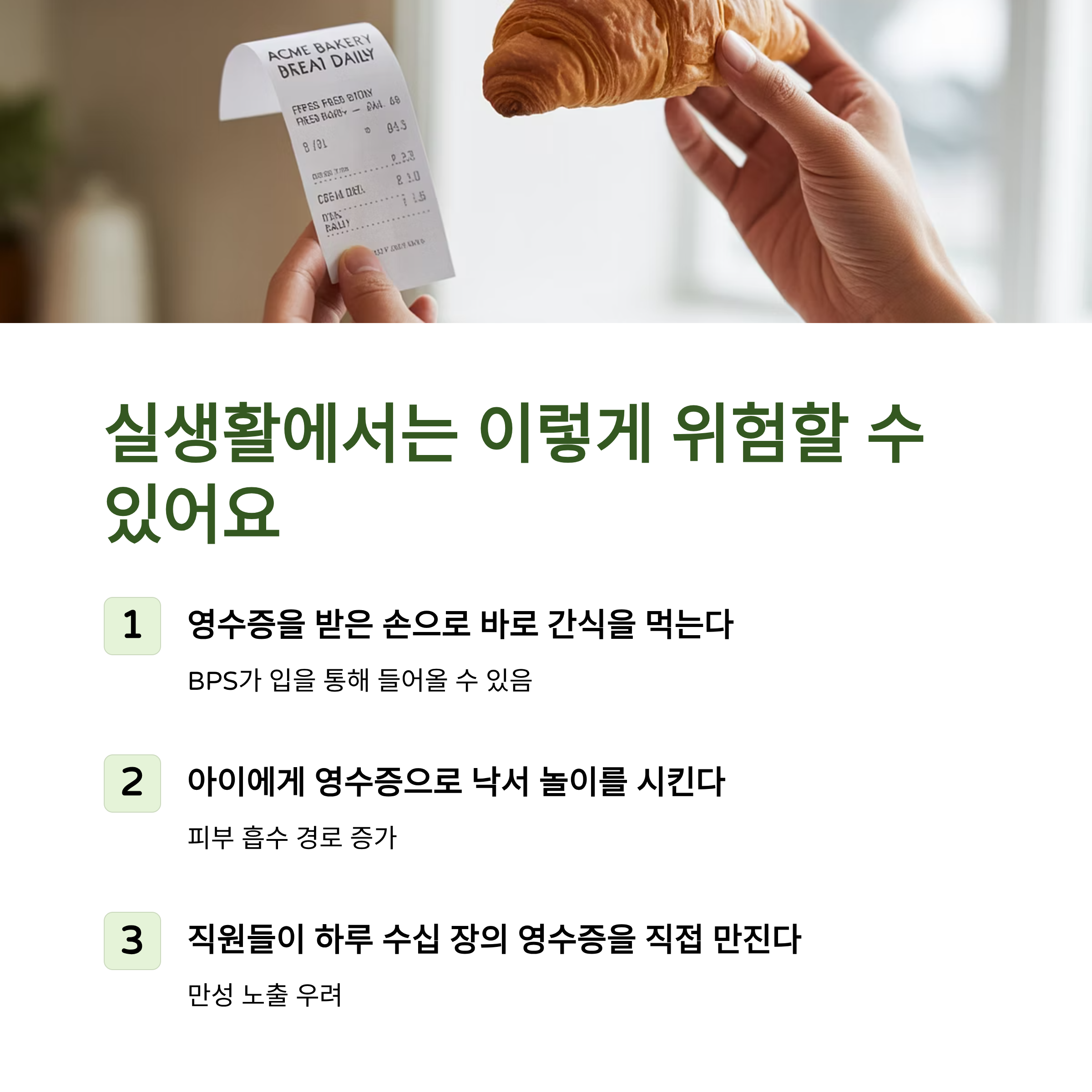 - 직원들이 하루 수십 장의 영수증을 직접 만진다 → 만성 노출 우려