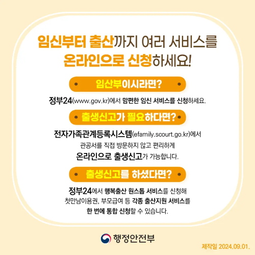 | 행복출산 원스톱 서비스 정부에서 주는 출산 지원, 신청 방법과 혜택 총정리! 첫만남이용권부터 부모급여까지, 놓치지 말고 다 받자! (6) | 2024.09.06 |