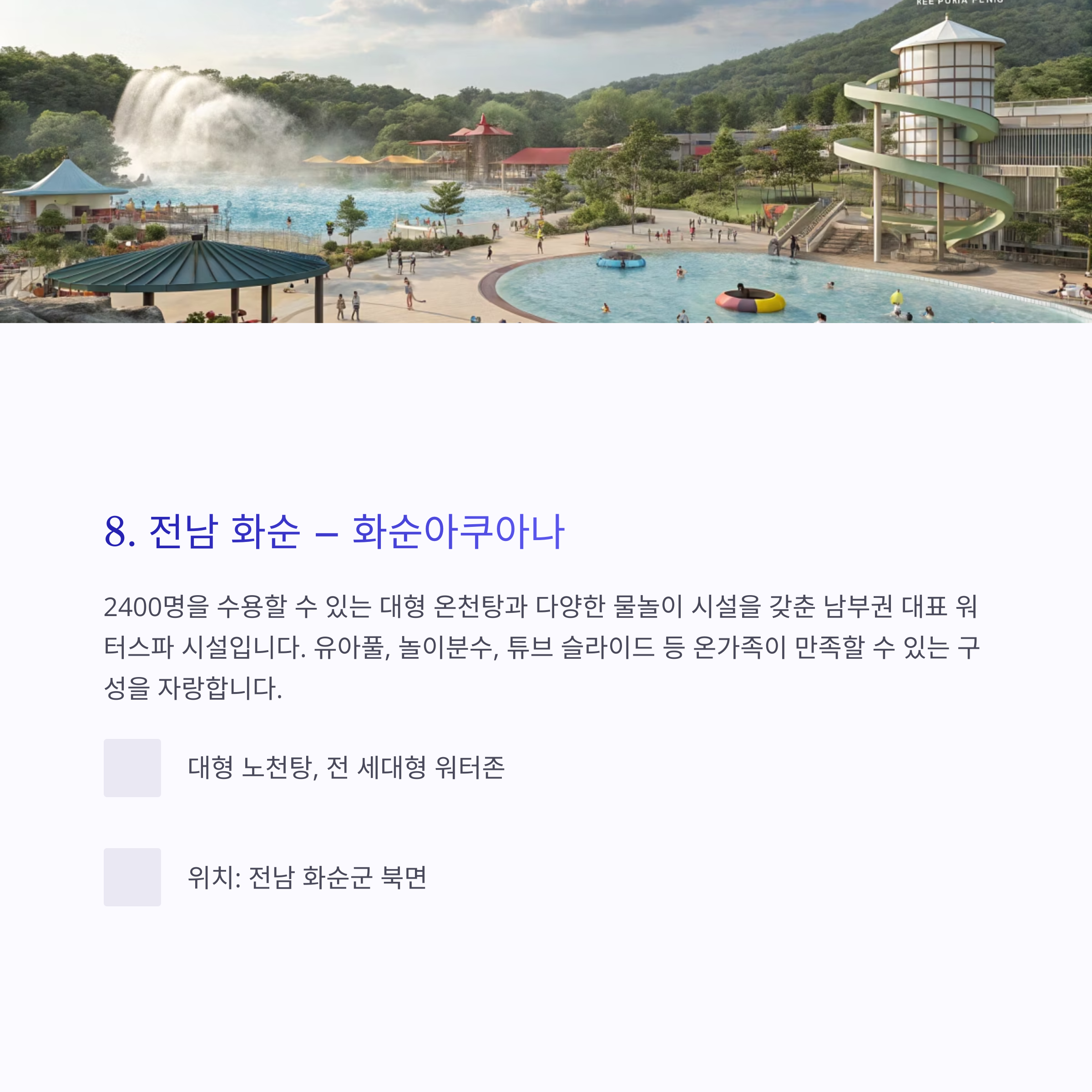 8. 전남 화순 – 화순아쿠아나: 대규모 가족형 온천 리조트