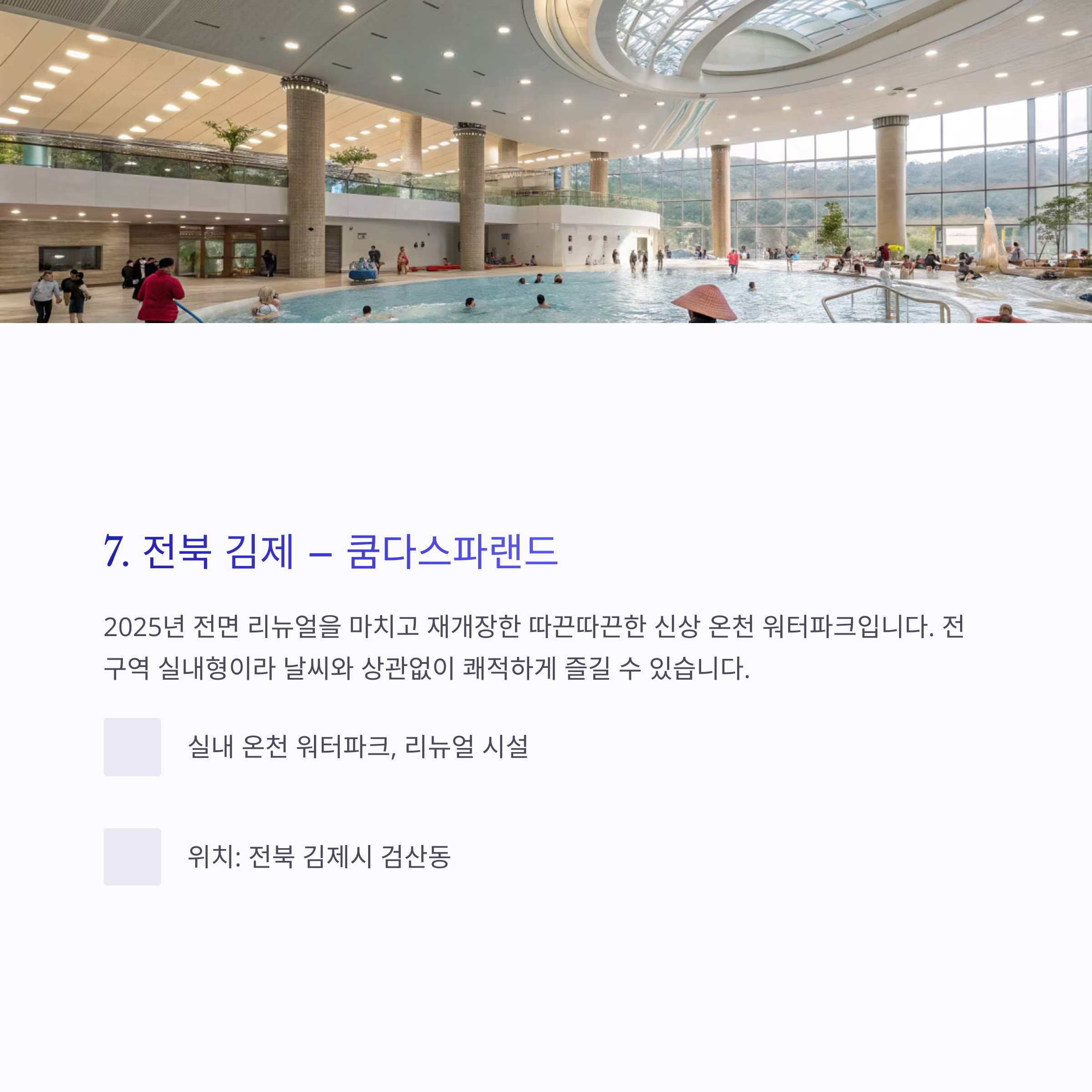 7. 전북 김제 – 쿰다스파랜드: 실내에서 즐기는 쾌적한 온천 워터파크