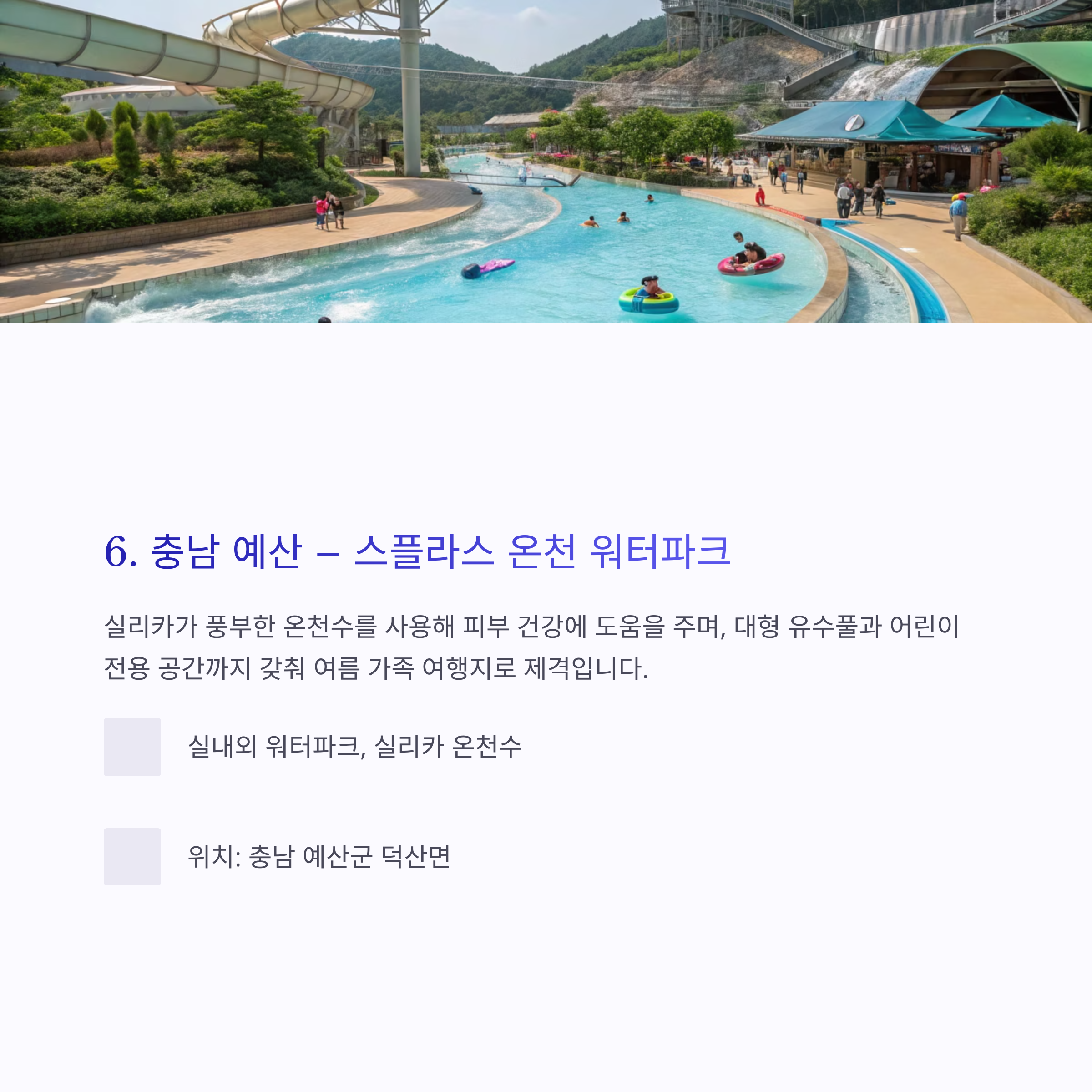 6. 충남 예산 – 스플라스 온천 워터파크: 온천수와 워터슬라이드의 만남