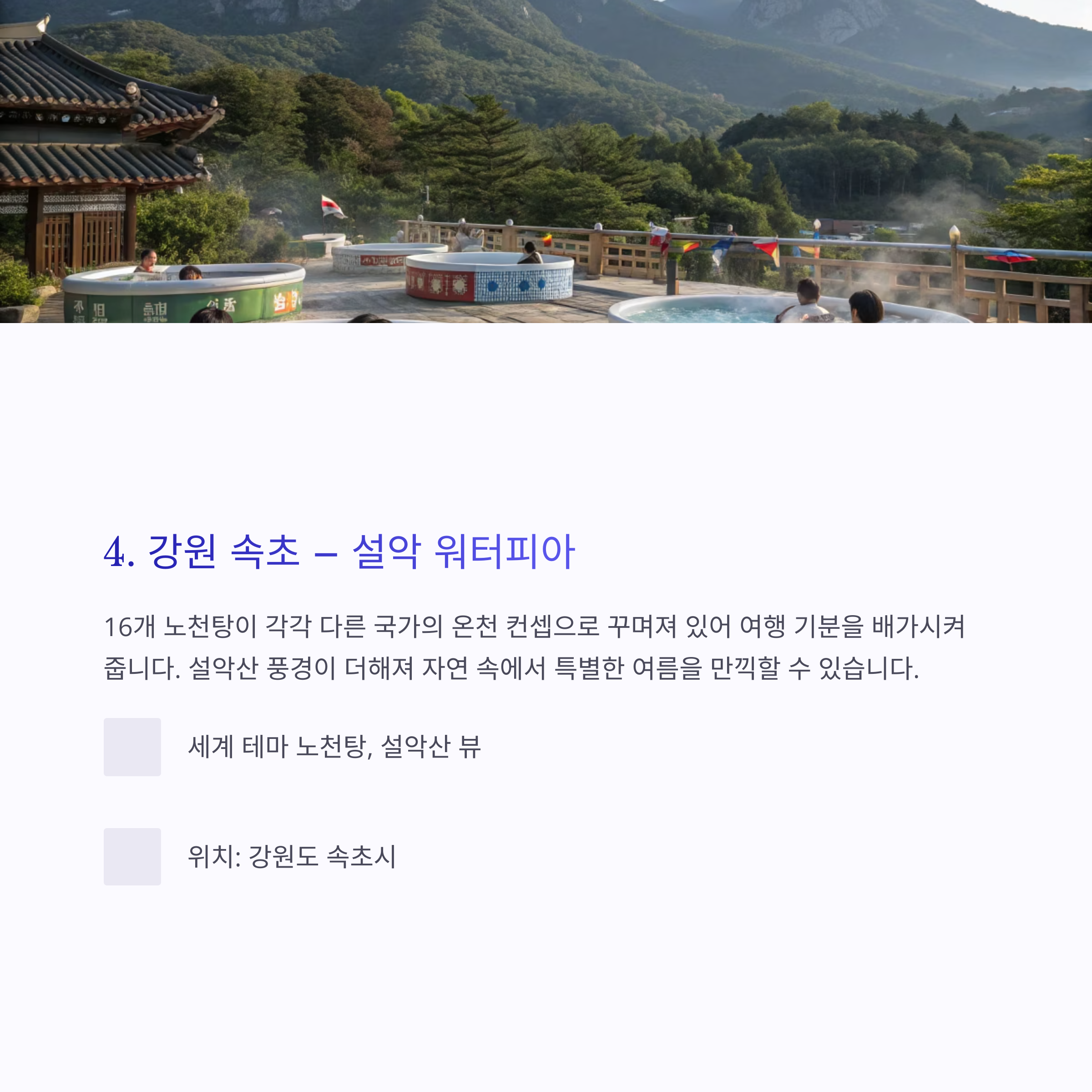 4. 강원 속초 – 설악 워터피아: 세계 온천 테마가 한자리에