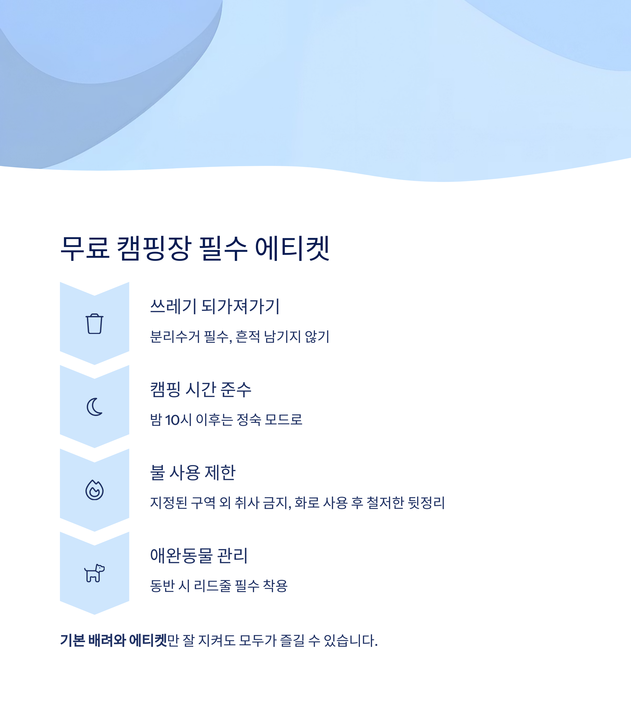 | 캠핑 시간 준수 | 밤 10시 이후는 정숙 |