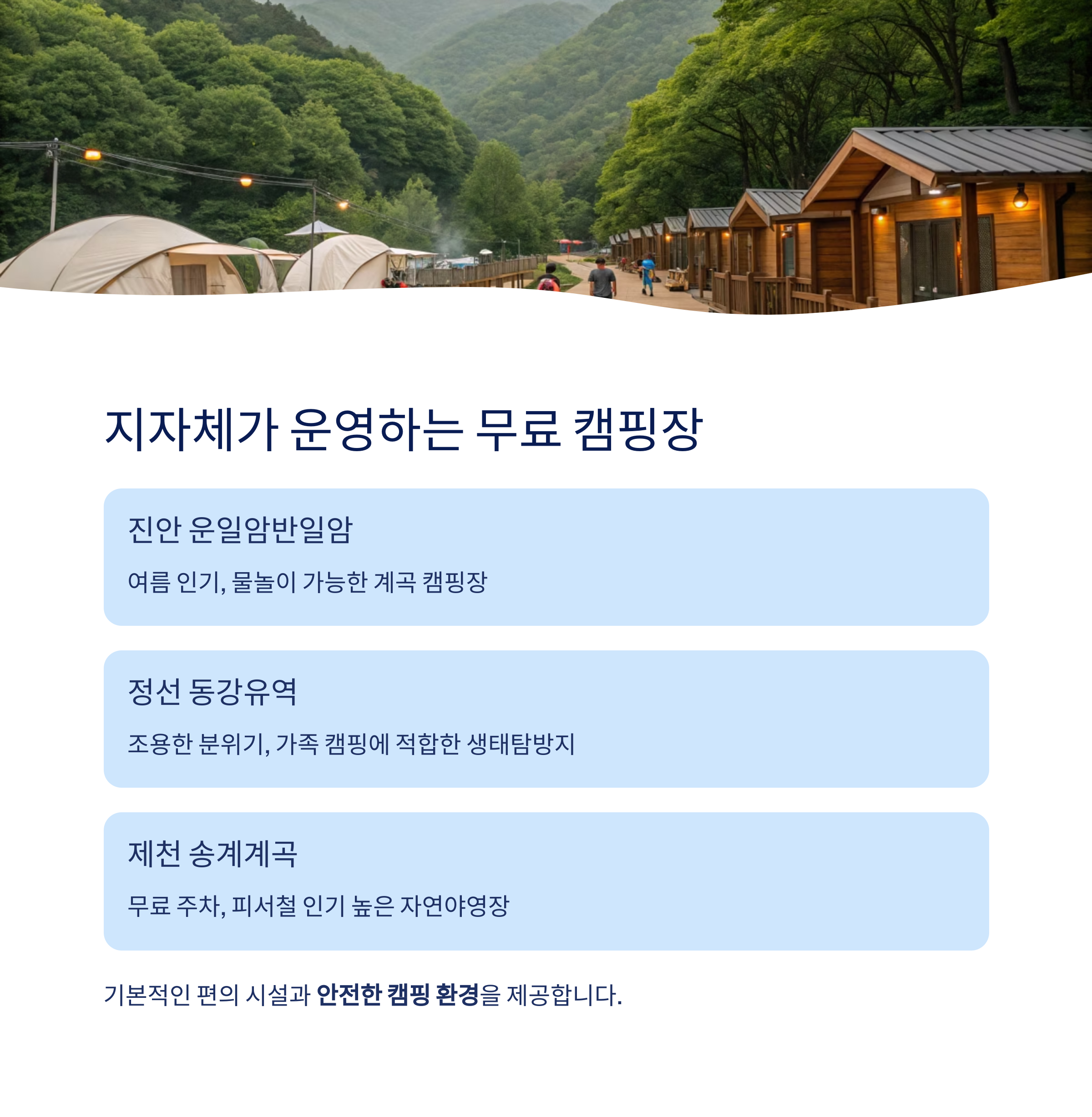 자연휴양림 인근에서 운영되는 쾌적한 무료 야영지들이