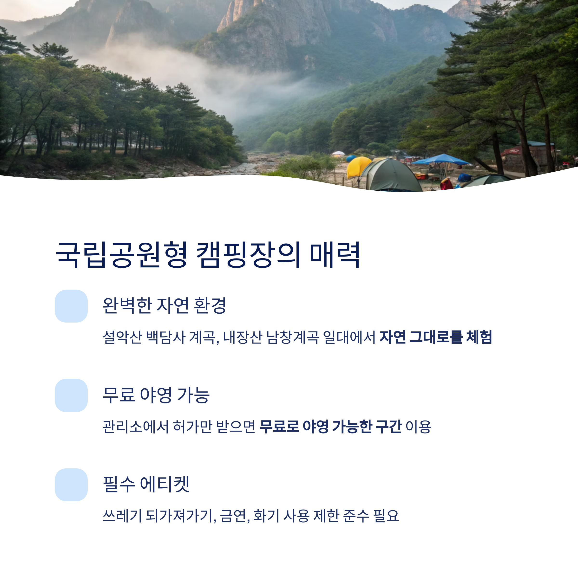 무료지만 관리 상태 우수한 ‘국립공원형 캠핑장’